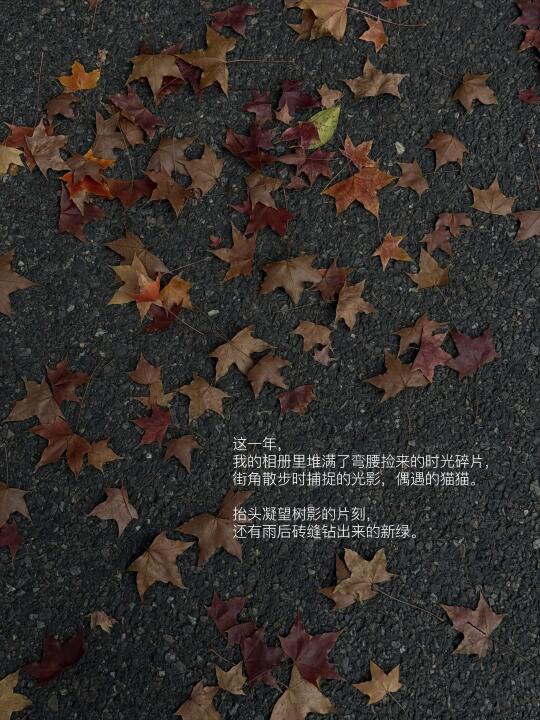 这一年,我的相册里堆满了弯腰捡来的时光碎片,街角散步时捕捉的光影,偶遇的猫猫。抬头凝望树影的片刻,还有雨后砖缝钻出来的新绿。