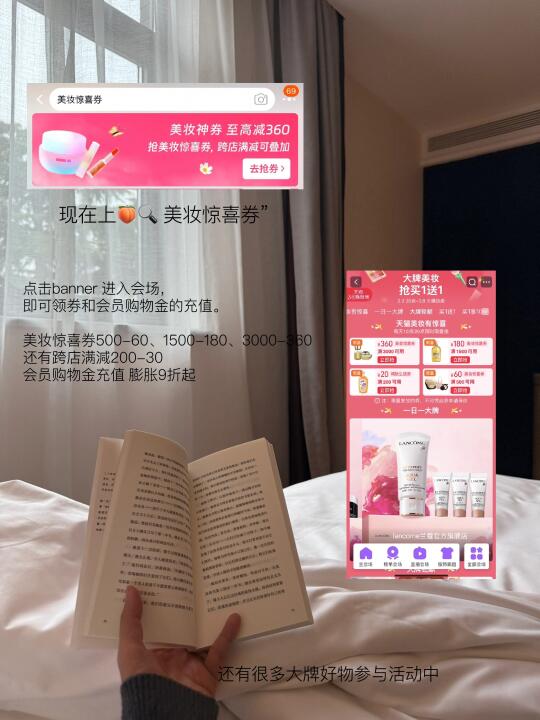 现在上淘宝🔍“美妆惊喜券”,点击banner进入会场,即可领券和会员购物金的充值。