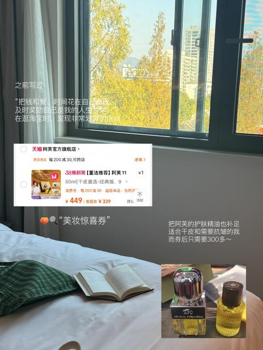 在逛淘宝时,发现三八节非常划算的活动,正好为自己补足护肤品,娇韵诗的清透防晒霜,MAC的口红,阿芙的精华油…还有很多大牌好物都参与活动中