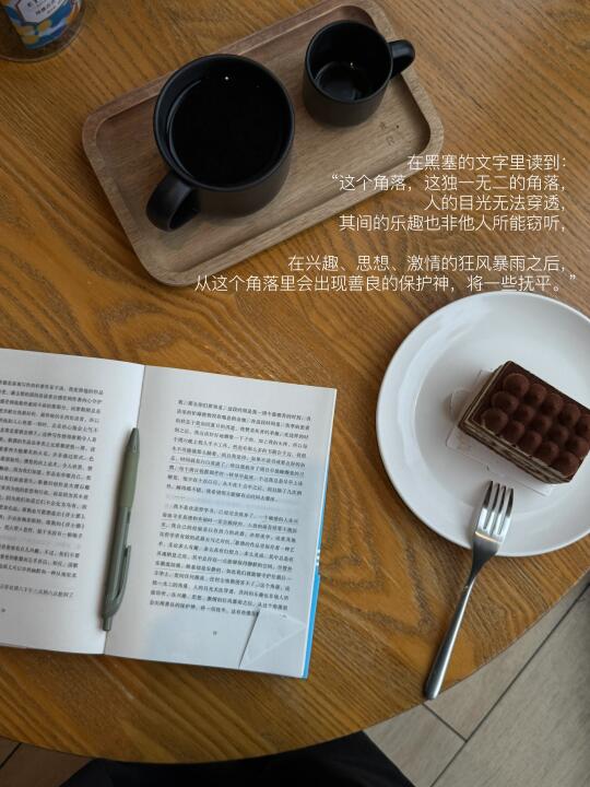 在黑塞的文字里读到:“这个角落,这独一无二的角落,人的目光无法穿透,其间的乐趣也非他人所能窃听,在兴趣、思想、激情的狂风暴雨之后,从这个角落里会出现善良的保护神,将一些抚平。”
