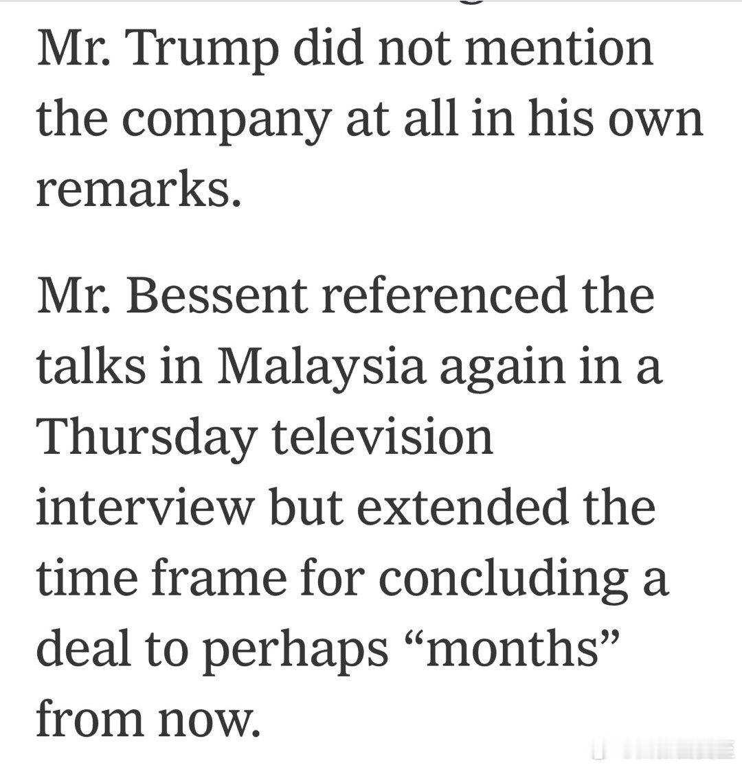 TT 的问题,没有进展Trump在讲话中完全没有提到据财长,完成“deal”还需