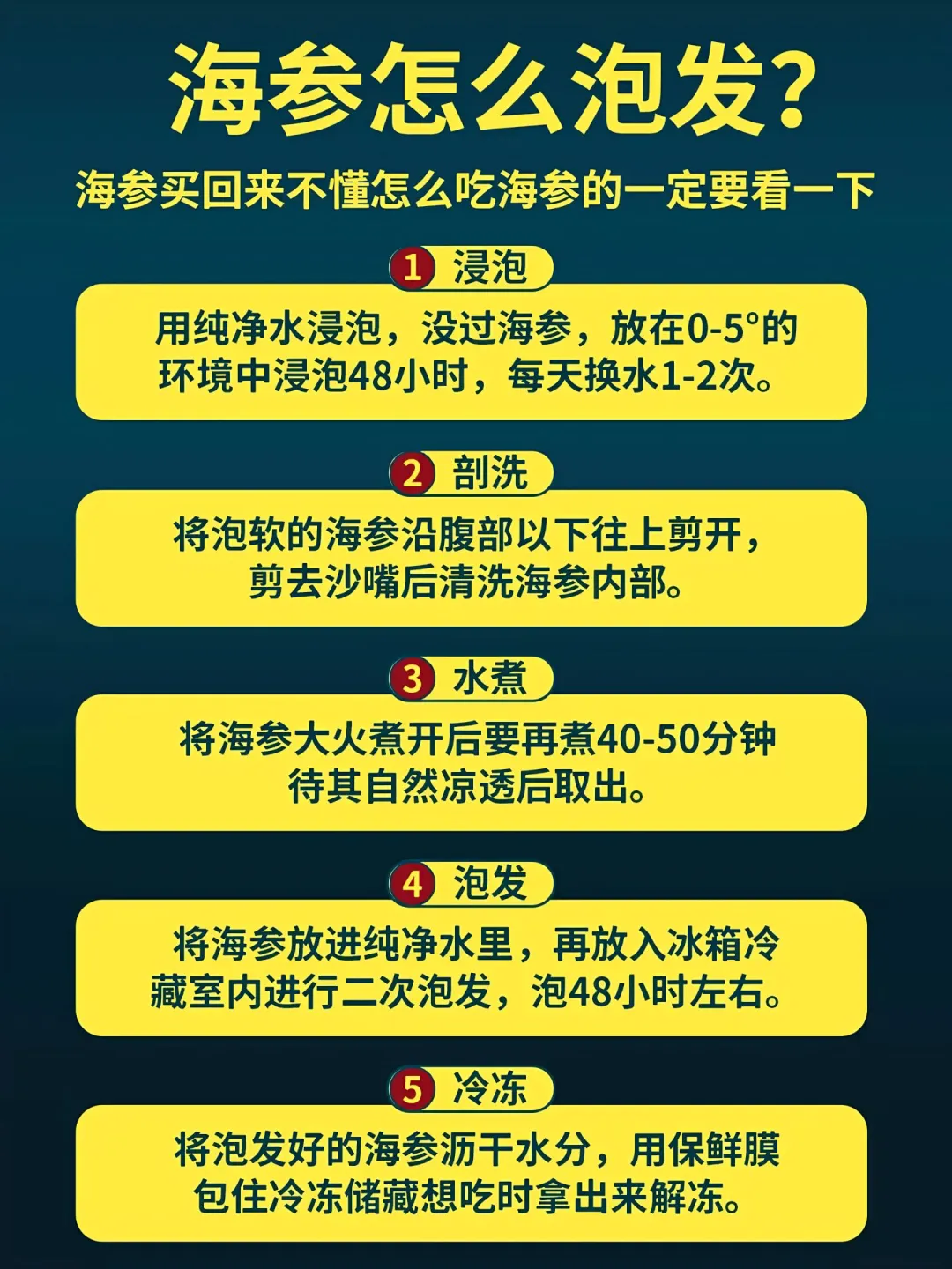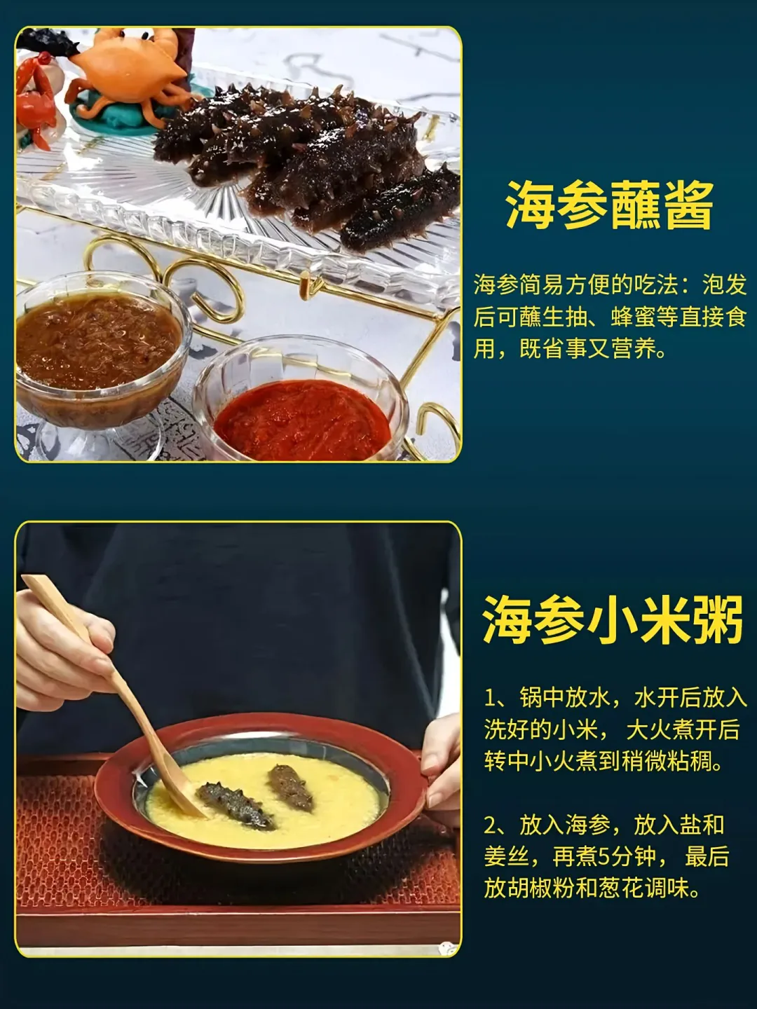 📌 Tips:海参蘸酱油/蜂蜜直接吃,懒人福音!不同品种做法略有差异,关东参适合煲汤,秃参适合红烧~