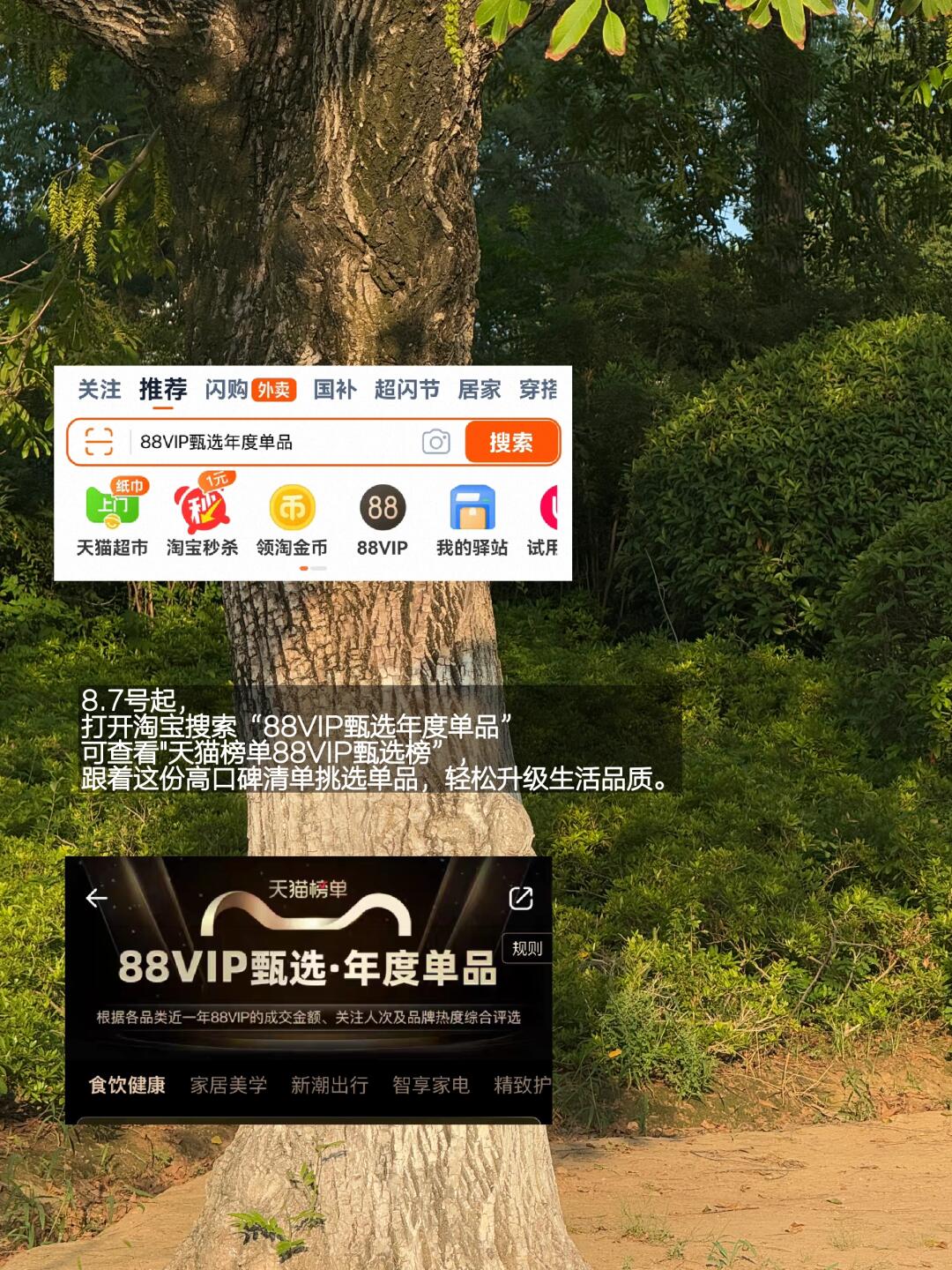 8.7号起,打开淘宝搜索“88VIP甄选年度单品“可查看"天猫榜单88VIP甄选榜”,跟着这份高口碑清单挑选单品,轻松升级生活品质。