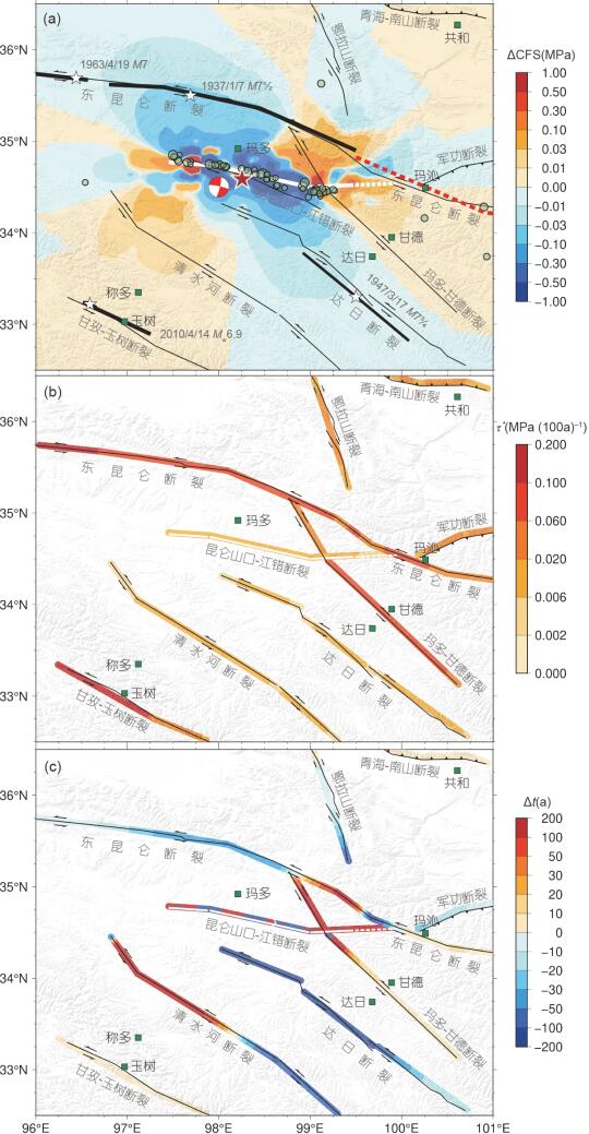📻从历史上看, 巴颜喀拉块体的地震活动非常强烈, 沿其边界发生过一系列破坏性强震(图1), 如1879年武都M8地震、1923年炉霍-道孚M7¼地震、1933年叠溪M8½地震、1955年康定折多塘M7½地震、1973年炉霍M7¾地震、1976年松潘的两次M7¼级地震等。📻 近年来, 该区地震活动呈增强态势, 相继发生了2008年MW7.9汶川地震、2010年MW6.9玉树地震、2013年MW6.6芦山地震和2017年MW6.5九寨沟地震以及于田地区的三次中强震(2008年MW7.1、2014年MW6.9、2020年MW6.3),还有2021年的7.5级果洛地震。