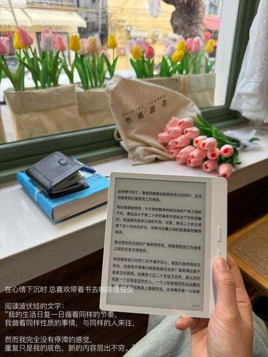 沙沙感的和读纸质书差不多,300ppi清晰度和Carta1300墨水屏技术,让文字更清晰、图像更立体。而它的灵敏度很迅速,无论是打开app还是翻页,更是秒点秒反应。书卷式握持设计,拿在手里很轻盈舒适。