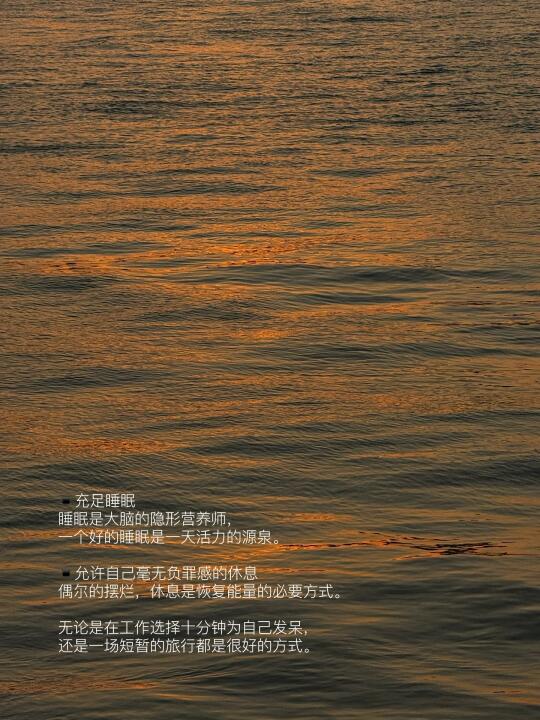 偶尔的摆烂,休息是恢复能量的必要方式。无论是在工作选择十分钟为自己发呆,还是一场短暂的旅行都是很好的方式。