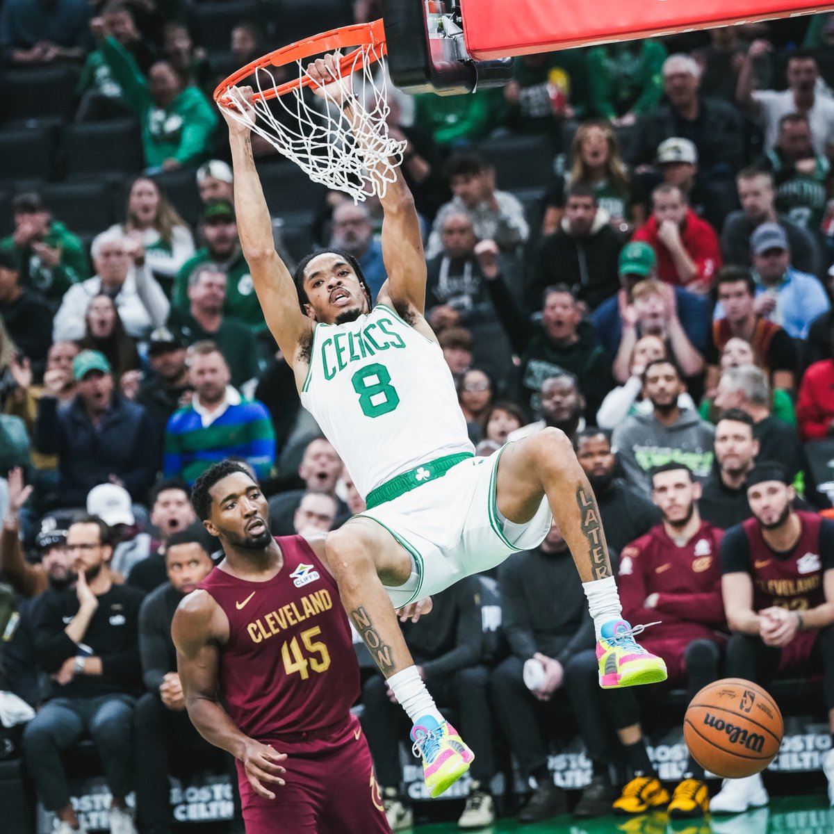 凯尔特人官方推特报道,约什·哈特:11分14篮板2助攻3抢断1盖帽,尼米亚斯·奎塔:10分13篮板3助攻3抢断。小伙子们正在场上飞奔翱翔✈