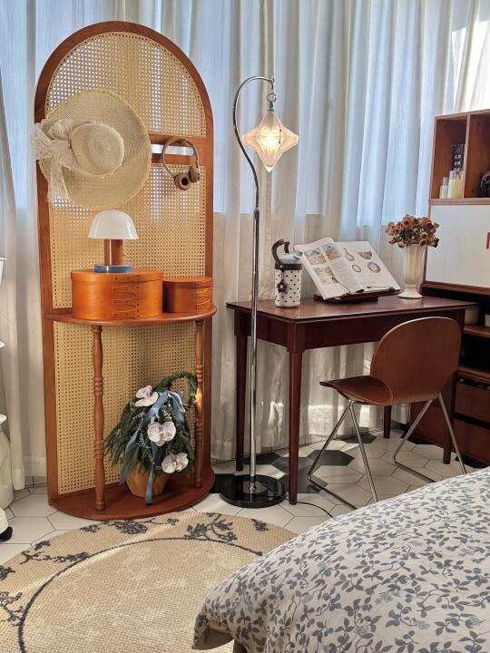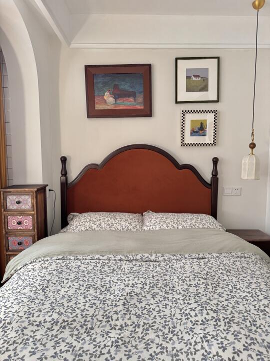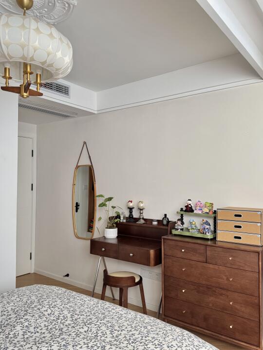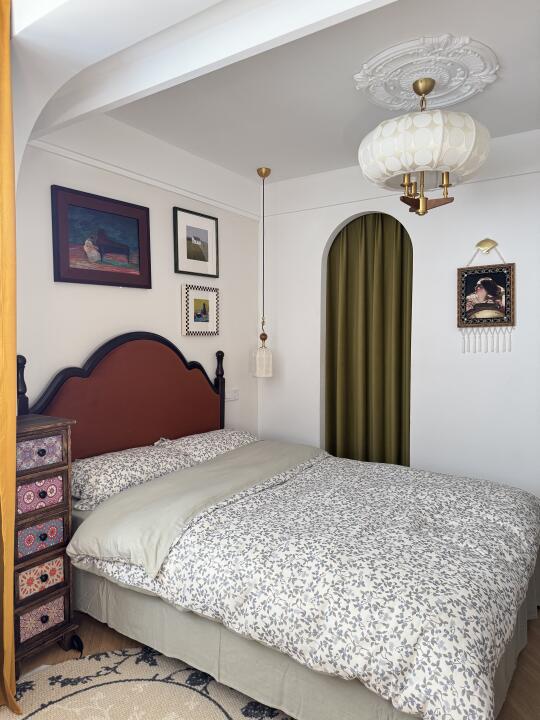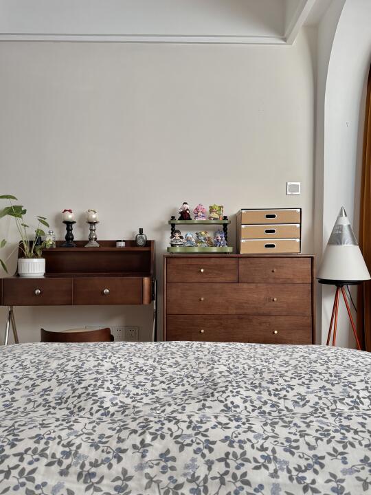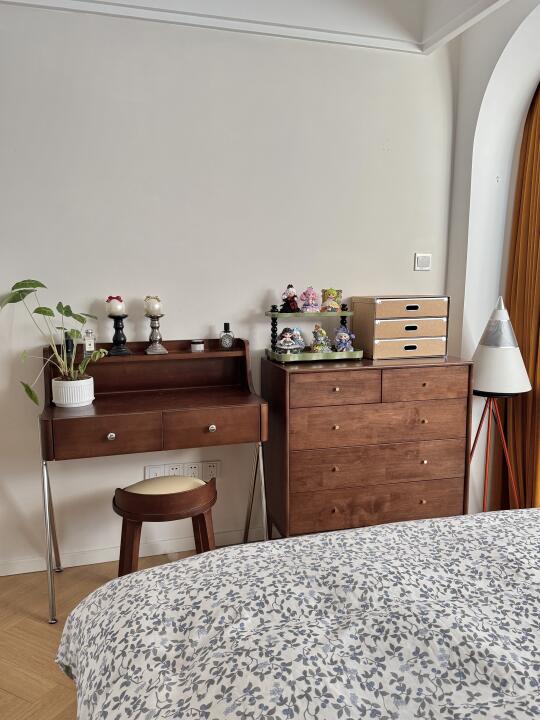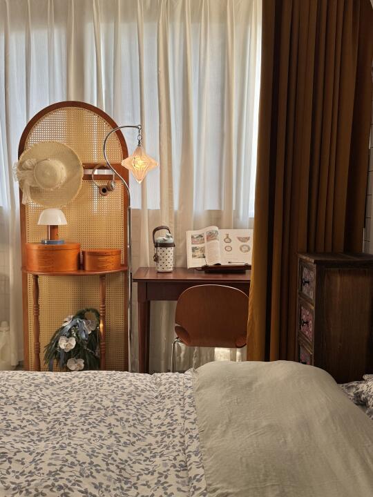 洗完澡才五点半, 看着阳光洒进卧室, 真的很治愈! ✨床1.5m,地毯1.2m ✨床头柜0.38m,斗柜0.85m ✨床尾过道1.2m,放完斗柜,还剩80cm