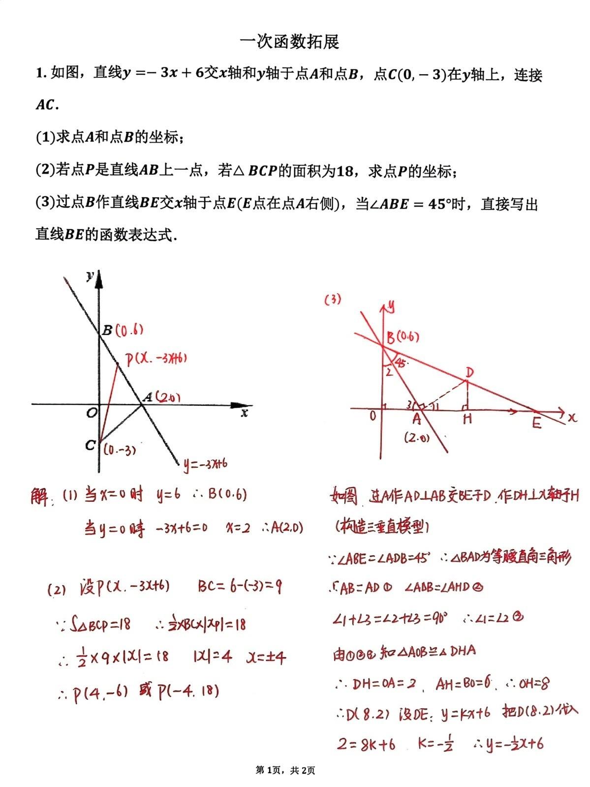 途虫数学教学日志,北师大版初二数学第三章,一次函数经典题目分享。函数是初中数学的硬骨头,占据了数学中考的小半壁江山。从一次函数开始初中数学函数的旅程,一开始接触到函数题的基本技巧,比如求函数表达式,求直线交点的坐标,简单的动点问题,最值问题,初步的分类讨论思想。对很多学生来说,这都是比较难的。函数经典题 初二数学 途虫数学 一本【数学压轴题】初中压轴题 一题多解带视频讲解