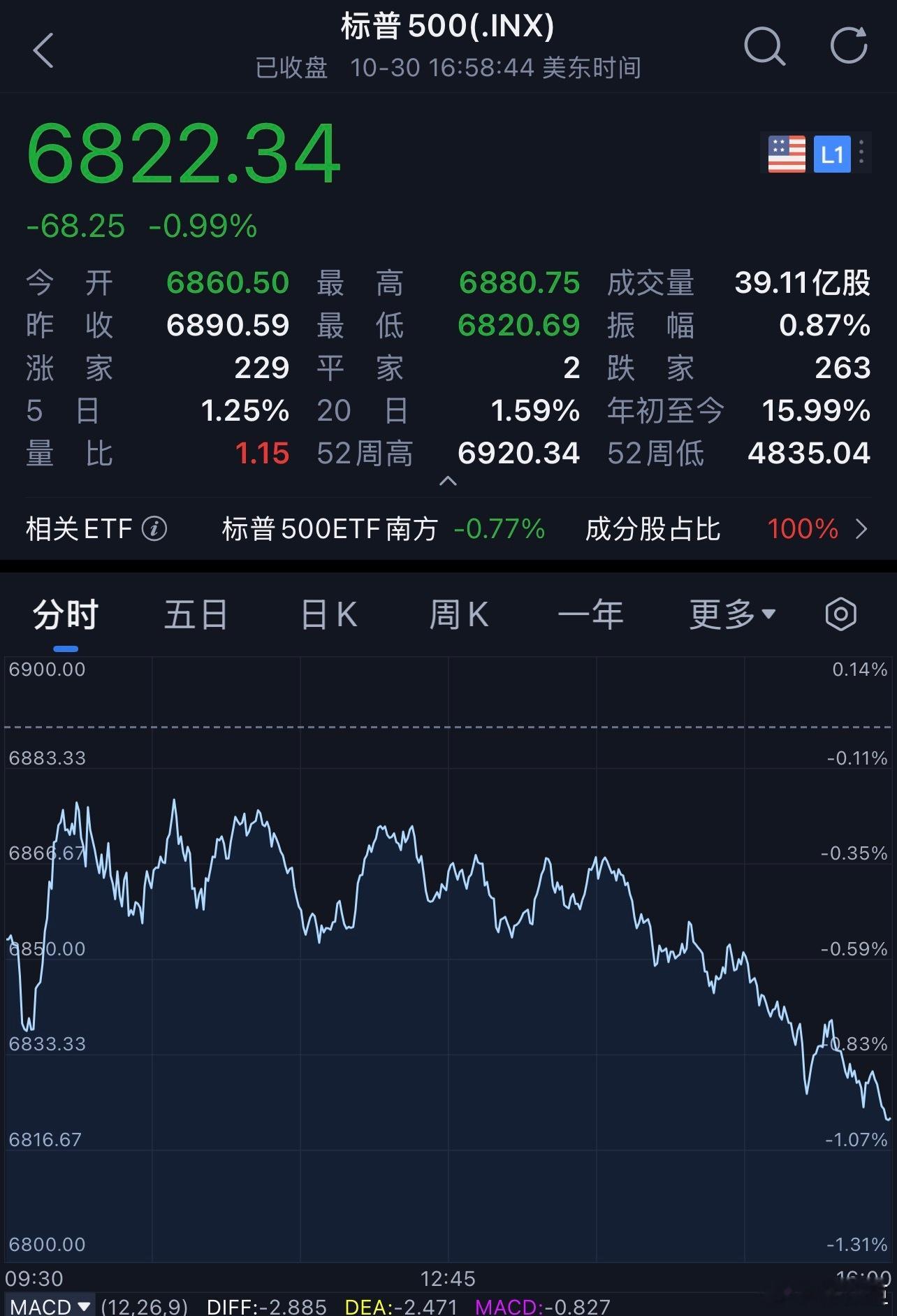 截至收盘,道琼斯工业平均指数下跌109.88点,至47522.12点,跌幅0.23%;标普500指数下跌68.25点,收于6822.34点,跌幅0.99%;纳斯达克综合指数下跌377.33点,收于23581.14点,跌幅1.57%。