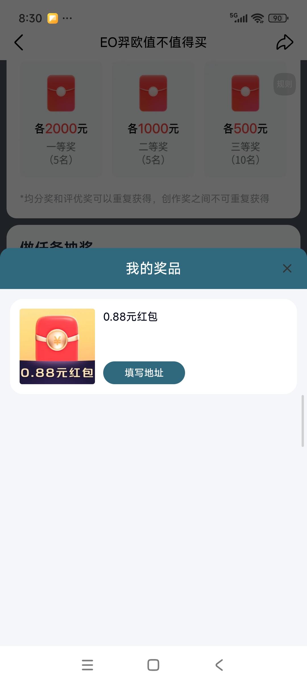 我的今日状态:😁轻松愉快 我这里的天气:☁️阴天 今天心情超级愉快,不仅仅是四个汽车征文完成阅读量,而且还抽到4个8.80元和4个0.88元大红包,合起来都是8吉利数字。 其实汽车征文接踵而来对于被限制推荐没有流量的网友确实不友好,我首当其冲受到打击,之前一篇文章阅读量就能过关的好时候早已成为往事。不过人还是应该有着积极向上的心态来看待问题,对任何事任何人都应该不抱怨、不妥协和向前看的心态来生活和工作。