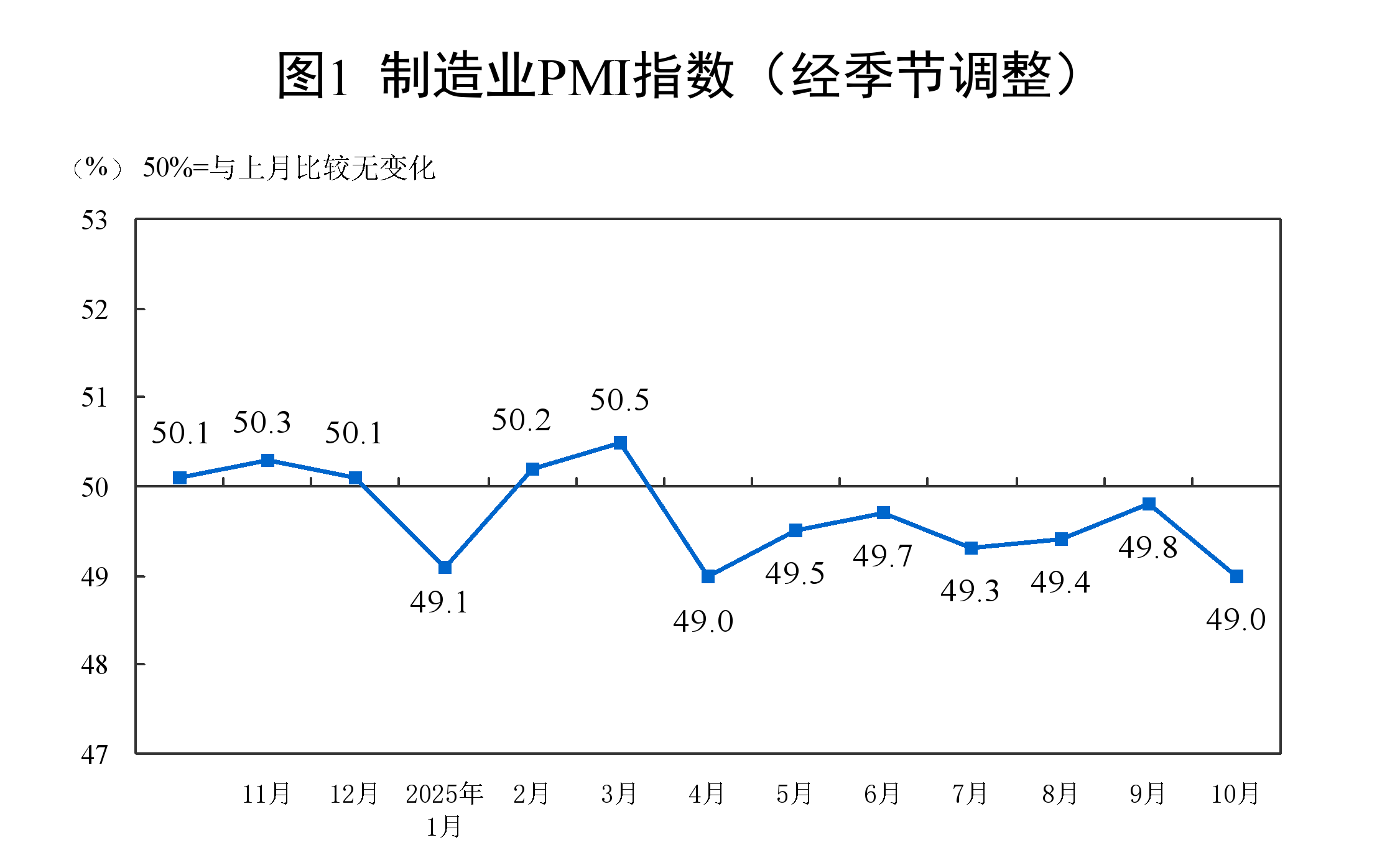 10月份,制造业采购经理指数(PMI)为49.0%,比上月下降0.8个百分点,制造业景气水平有所回落。