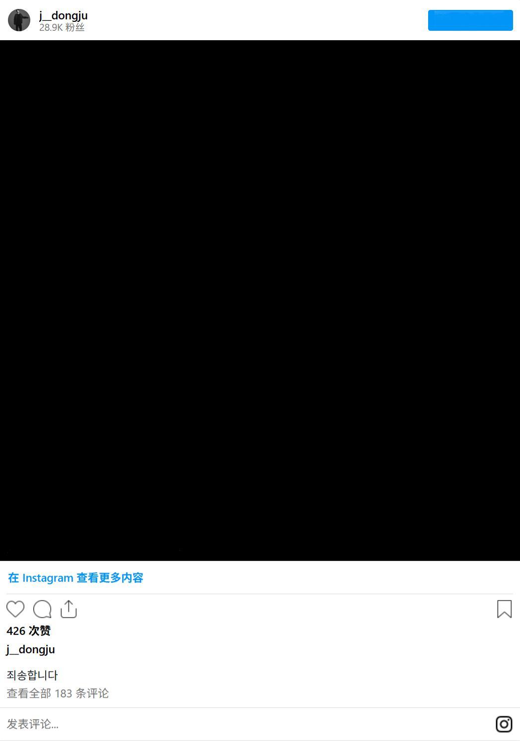 张东周于31日上午在自己的Instagram上发布了一张黑色背景的照片,并配文"对不起",表达了歉意。