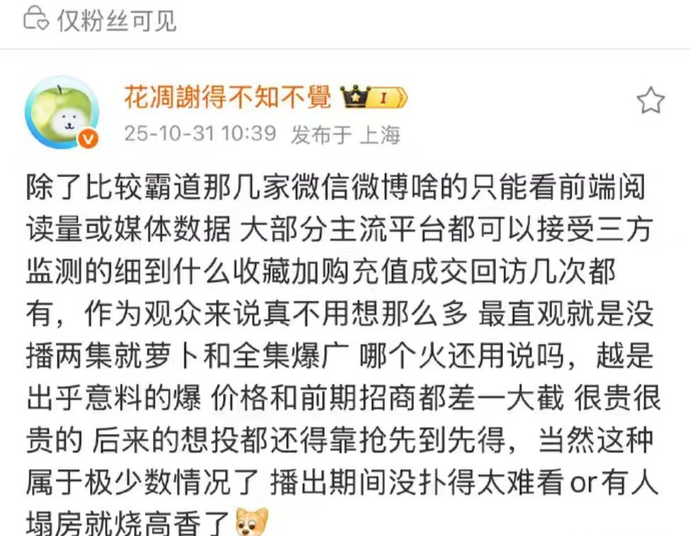 说业内更看重的几大指标有广告收益、收视率、收视份额、重播率、作品影响度,感觉这个还蛮靠谱的