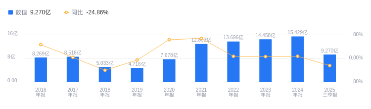2025年三季度,东方锆业营业收入为9.27亿元,行业排名11/15,远低于行业第一名贵研铂业的451.79亿元和第二名锡业股份的344.17亿元,也低于行业平均数73.57亿元和中位数22.83亿元。当期净利润为3868.12万元,行业排名14/15,与第一名锡业股份的18.45亿元、第二名华锡有色的8.29亿元差距明显,低于行业平均数3.41亿元和中位数1.19亿元。