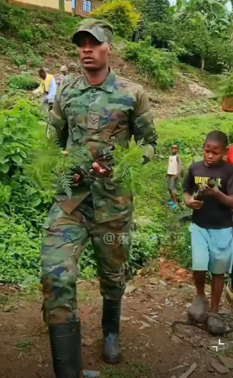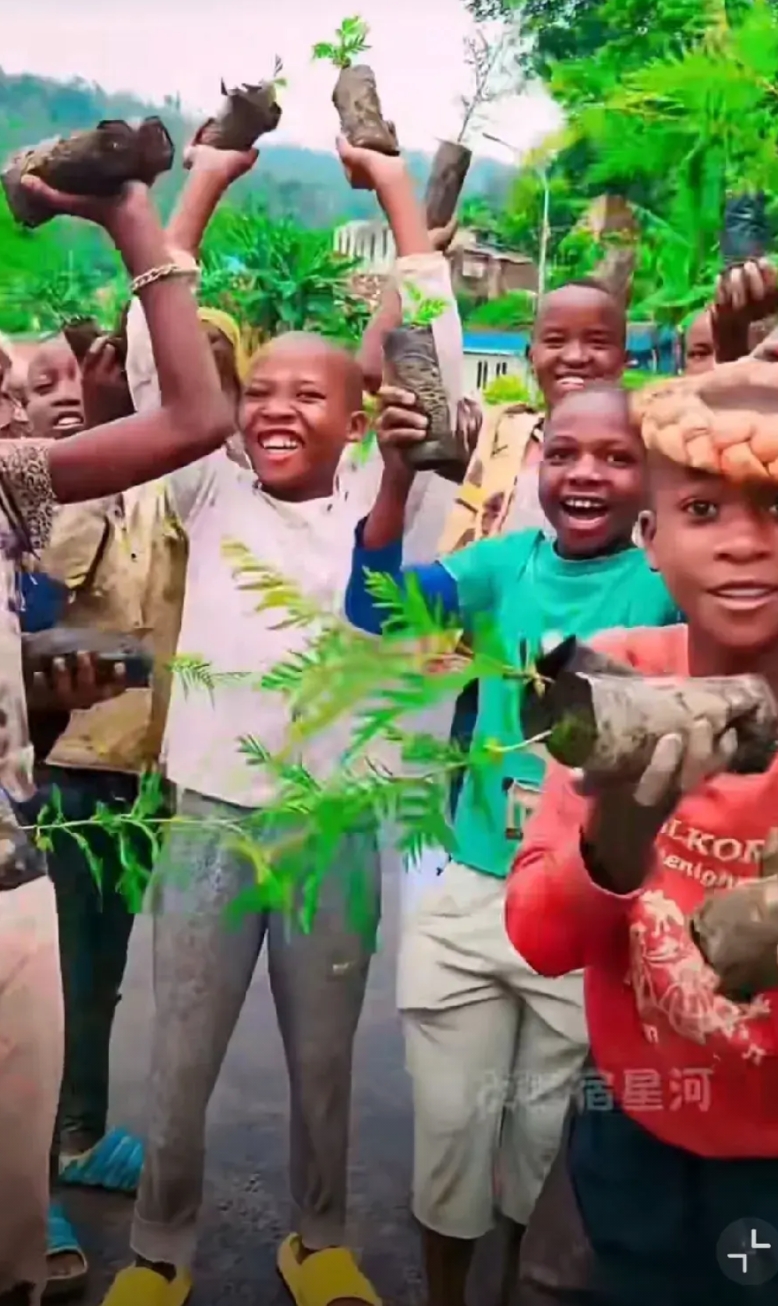 老百姓们不分男女老少,只要能走路的,手上拿着树苗,跟着军人一起来到植树地点,开开心心种起树来。这样的景象,非洲其他国家不知道有没有出现过。