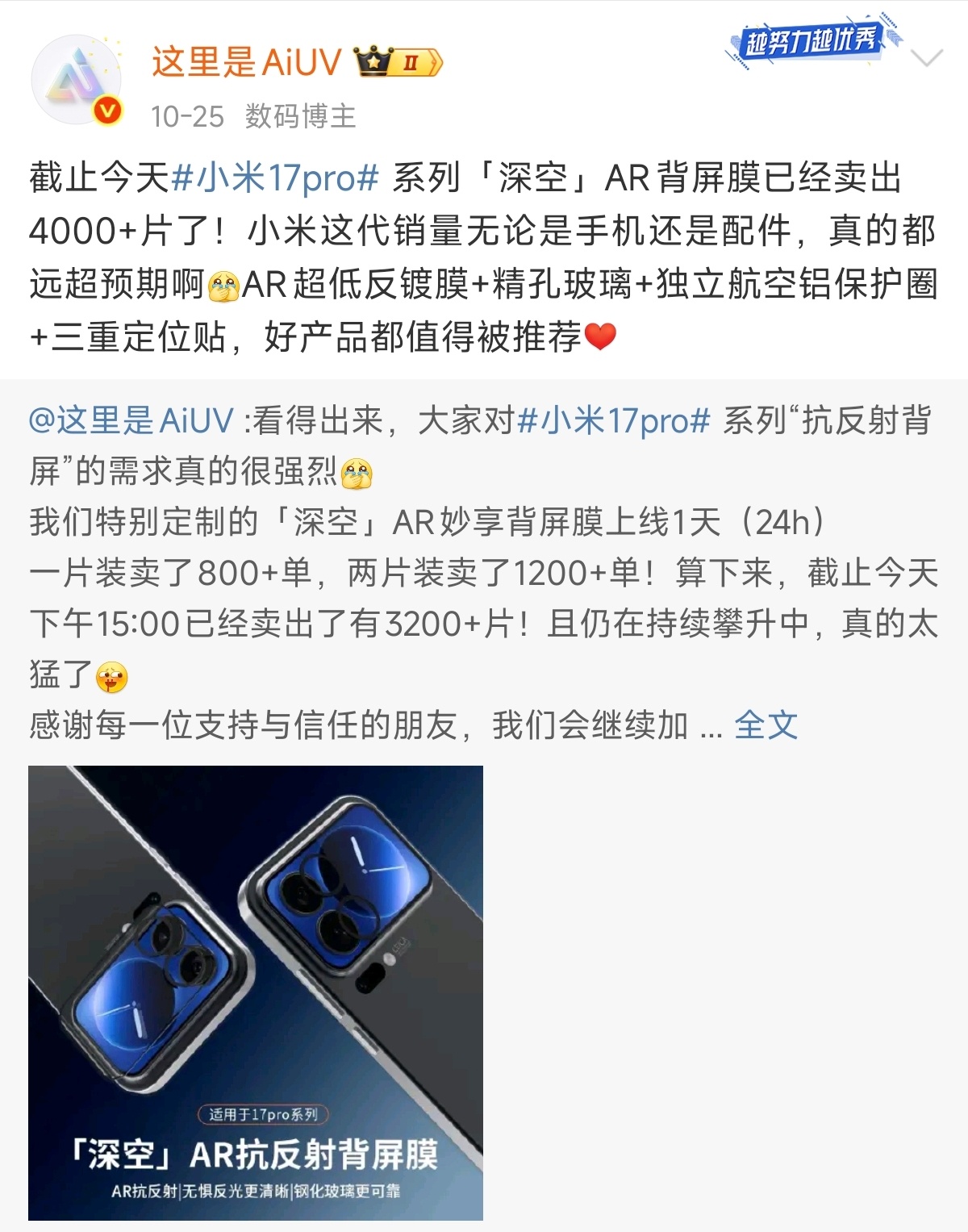 这都是排除官网壳膜,排除“裸奔”用户,只购买第三方壳膜的几个在微博上活跃的优秀第三方。这样的销售数据,连他们都在感叹以后很难打破。
