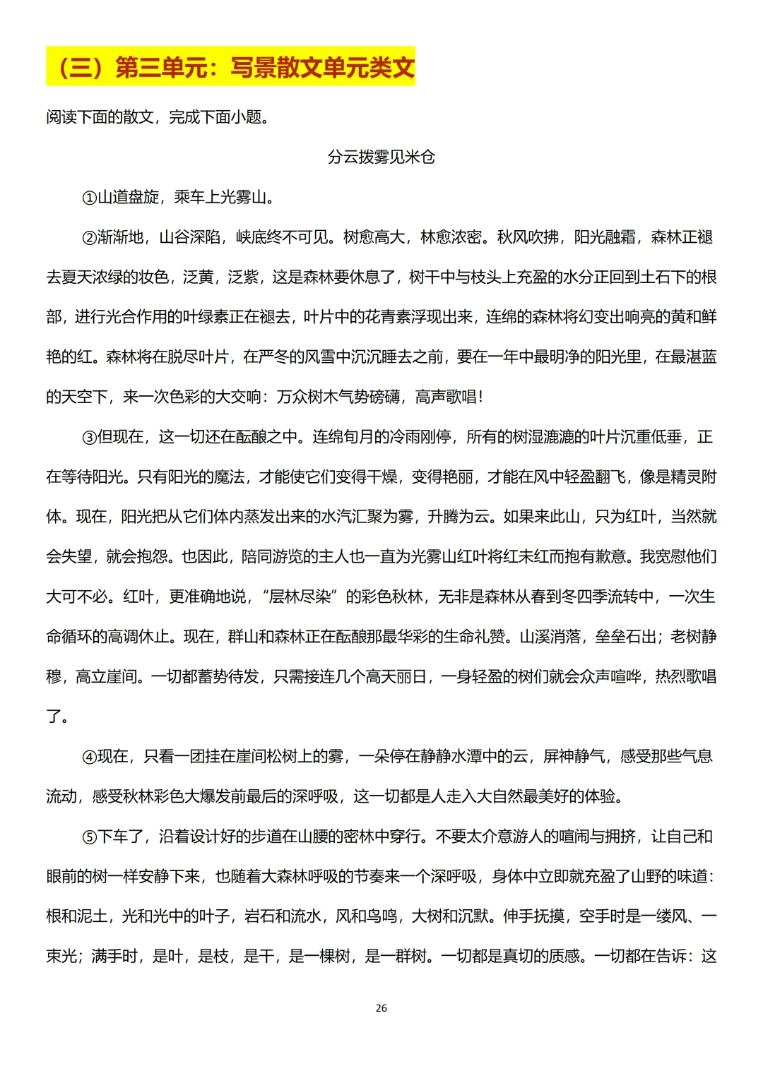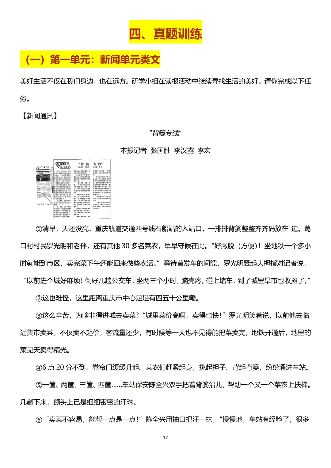 为了帮助大家提高期中考试阅读板块的分数,老师精选了近 3 年各地期中考试的8篇高频阅读真题,包括2篇新闻类文本阅读、2篇人物传记类文本阅读、2篇写景散文类文本阅读以及2篇非连续性文本阅读,提前练好,无论考试考到哪种类型都不用慌。