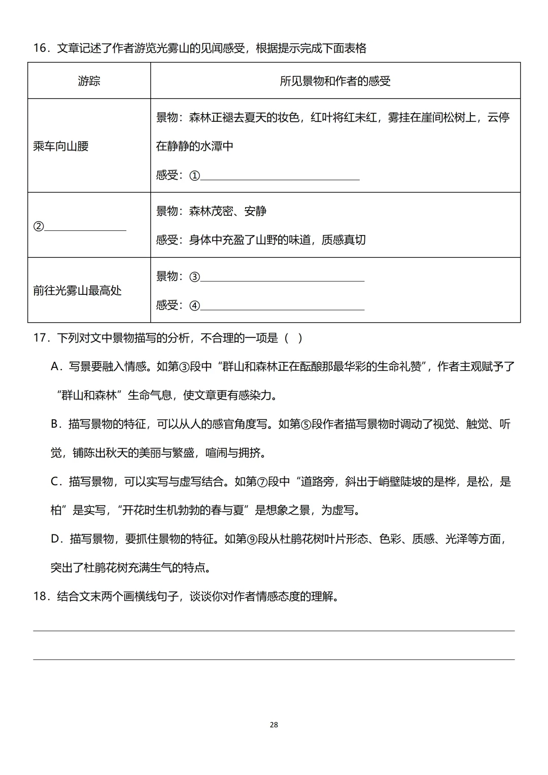 👉 我给大家梳理了文学性文本阅读的六大答题公式