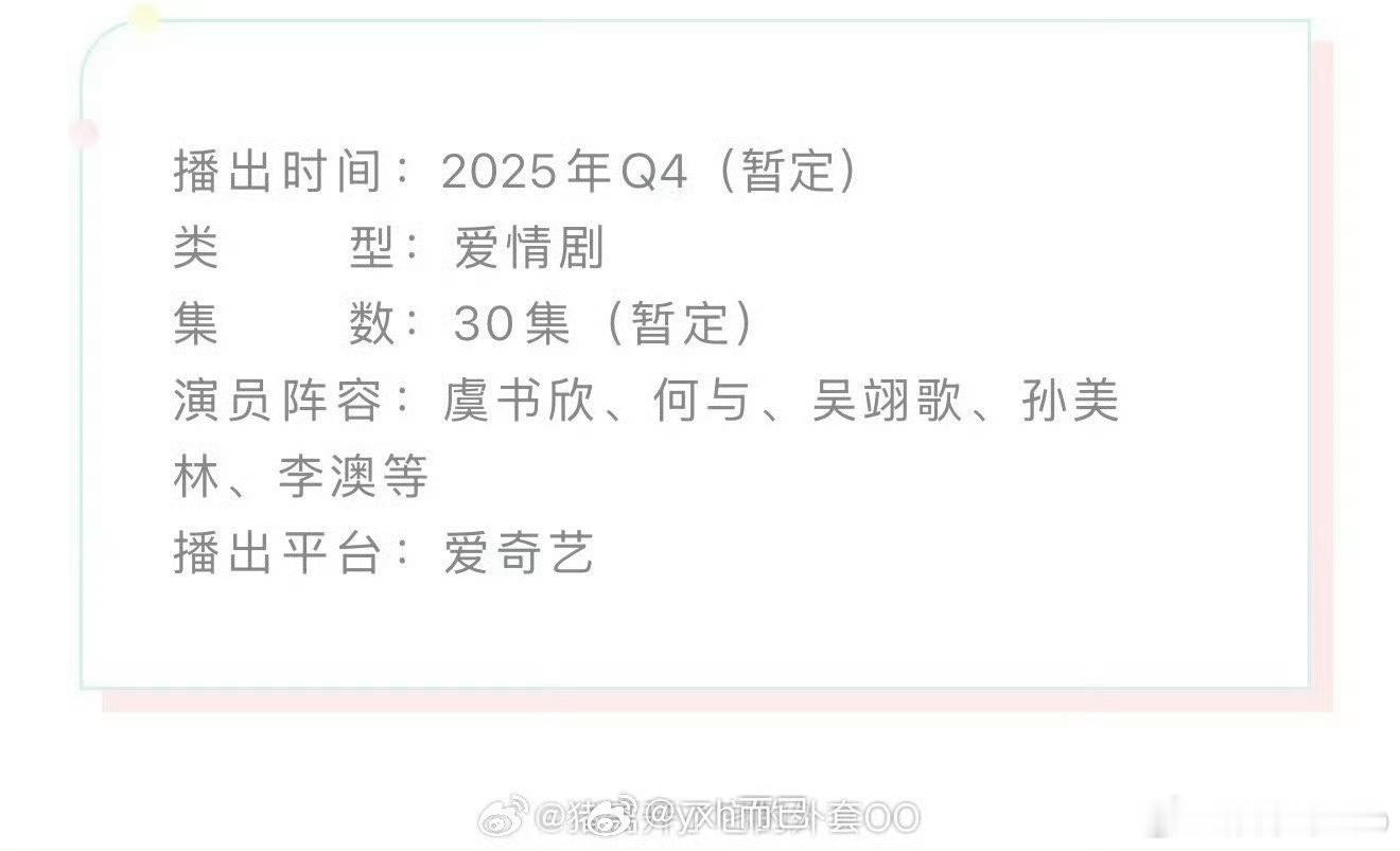 虞书欣、何与《双轨》开启播前招商,预计第四季度在爱奇艺播出 …看来并没有什么影响
