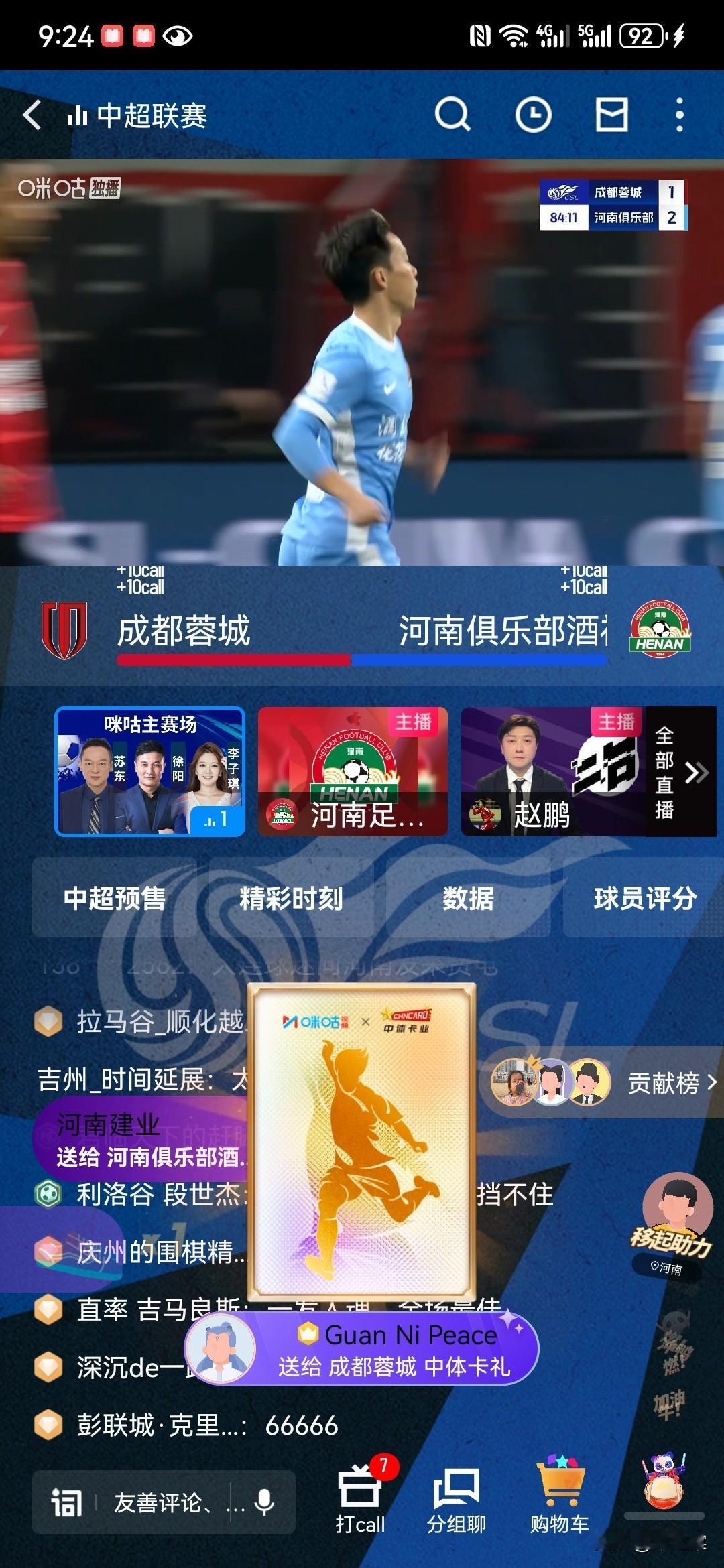 2:1,专治各种不服的河南队又回来了,客场力克成都蓉城。83分钟,河南队何超世界波破门,客场2:1领先。 破门瞬间,河南远征军沸腾了,成都球迷一片寂静。成都蓉城就此退出本赛季冠军的争夺。 本赛季专克强队的成都蓉城,反而被河南队在联赛和杯赛中三杀。 下半场补时13分钟,河南队三军用命、众志成城,顽强地将比分保持到终场。