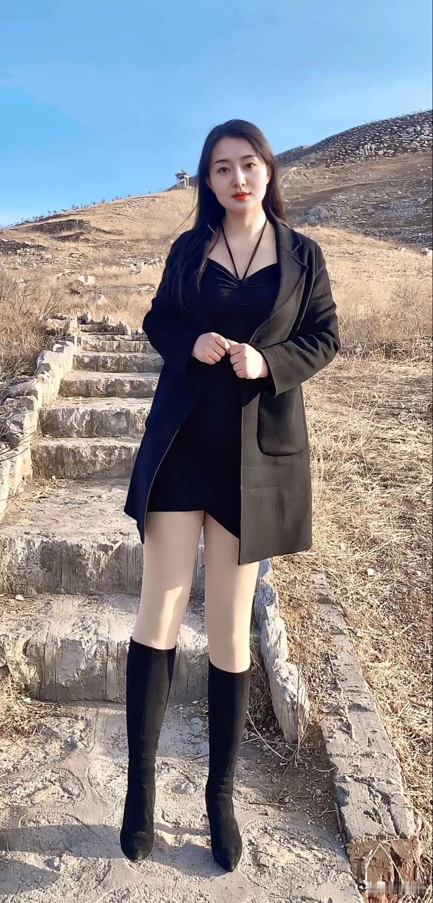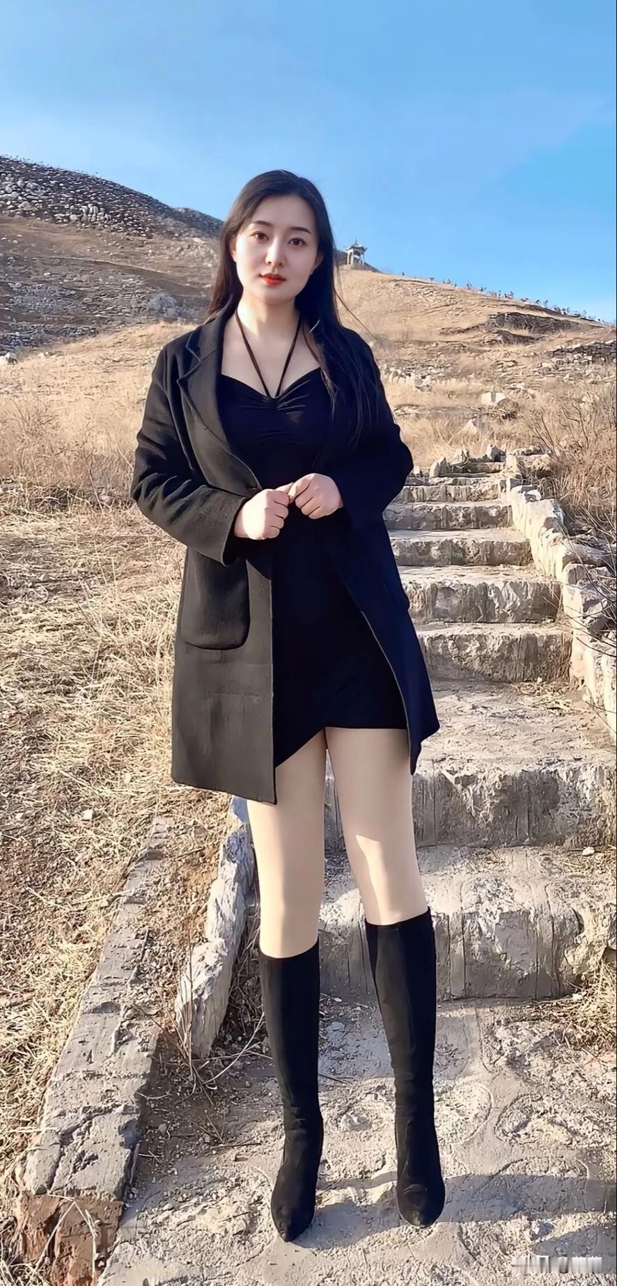 三里屯偶遇颖儿的穿搭杀疯了!黑色短裙+厚底靴衬得腿又长又直,叠穿的棕皮衣混着松弛