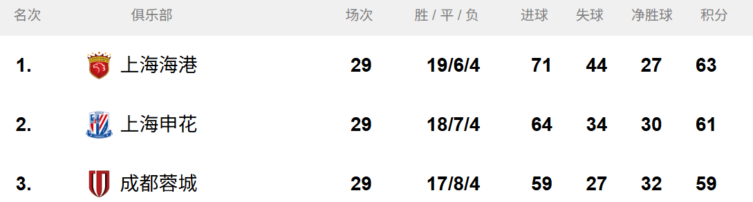 这应该就是联赛的最终排名了,还是那句话,谁都别怪,就怪自己没把握好机会。海港夺冠,那全靠同行衬托。
