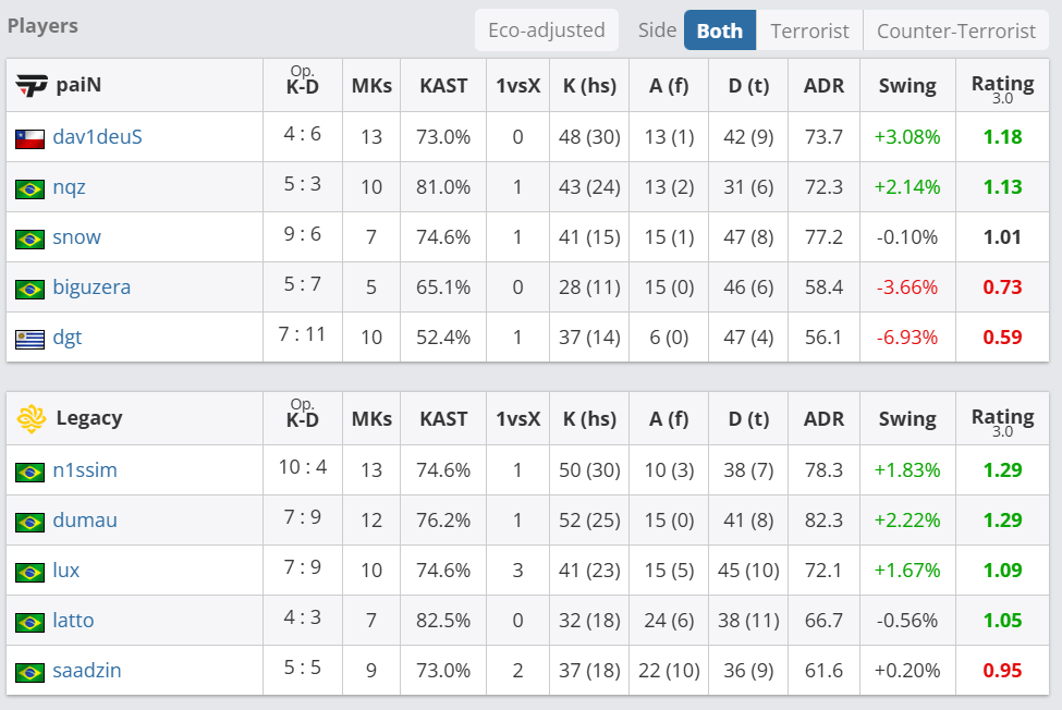 图二Dust2dumau延续着Legacy图一的火热状态拿到1.85rating但其余队友手感不佳被Pain抓住机会最终Pain以13-10战胜Legacy扳回一城