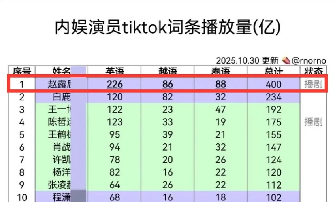 赵露思海外tiktok词条播放量破400亿🔥断层第一