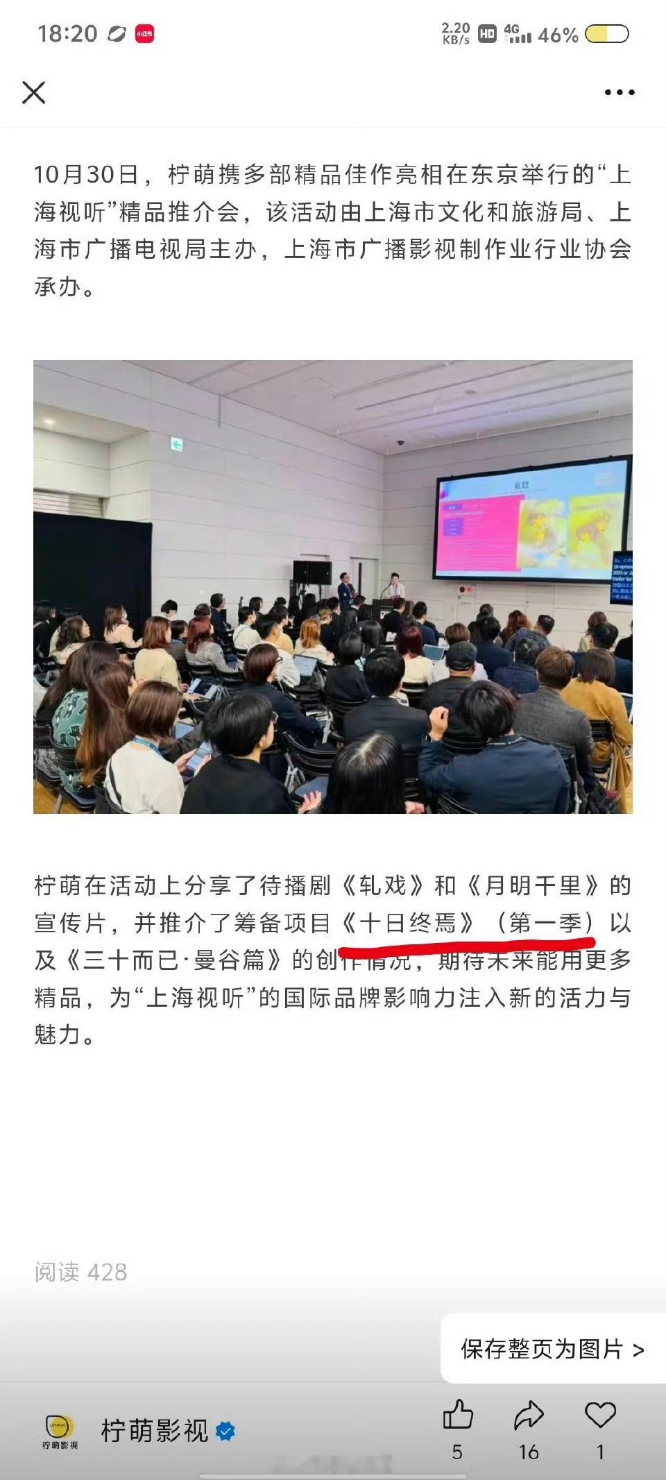 柠萌东京国际影视节展,墙上小城良方上面就是是十日终焉,还透露十日终焉将做成季播剧!
