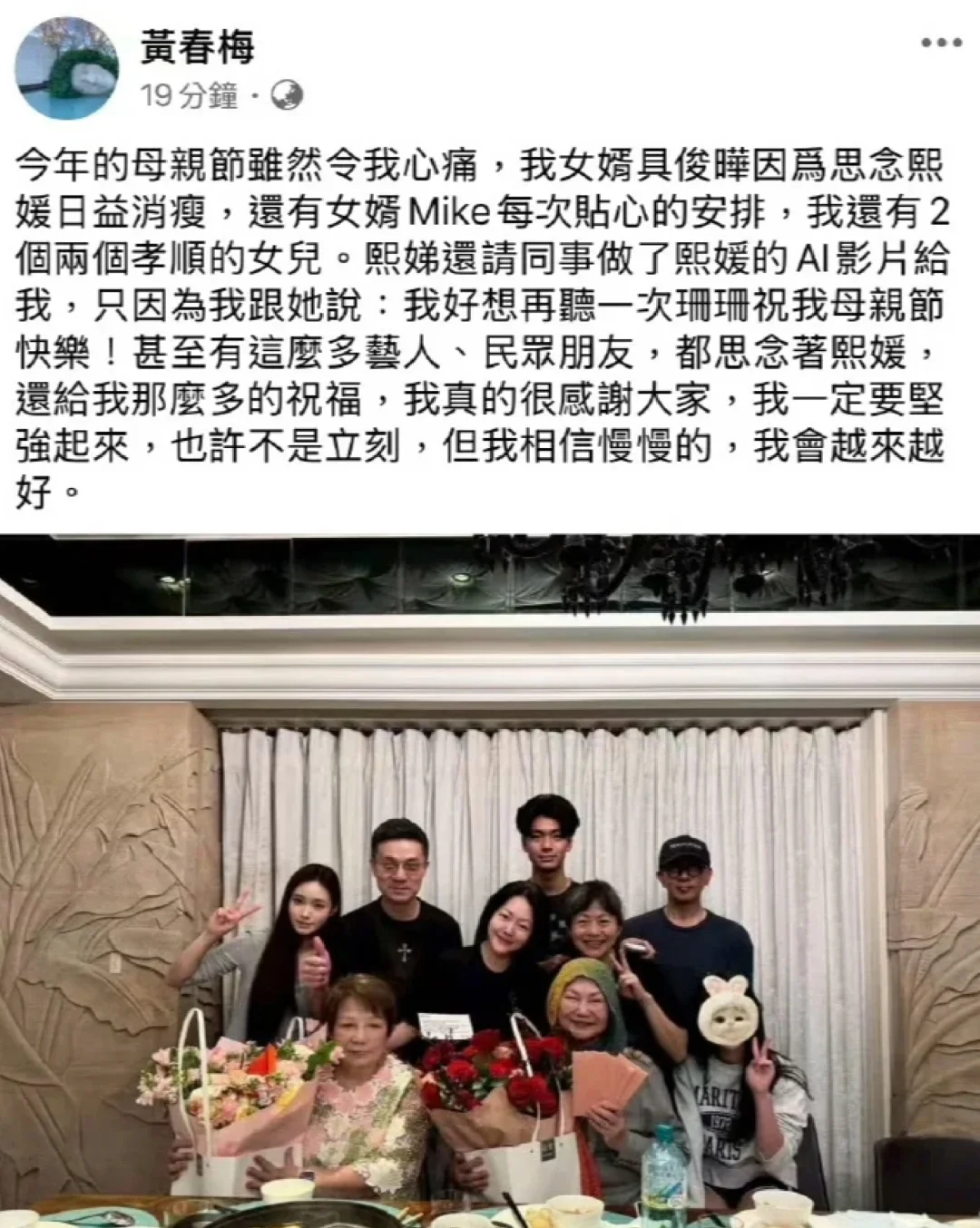 大S离世以后徐妈妈悲痛欲绝,小S开始振作起来扛起徐家,突然发现徐家大姐这些年几乎隐身,除了偶尔在照片中露脸以外,在大小S的只言片语中,只知道她很享受平凡的生活,现在看来她才是蕞幸福的人啊[皱眉R]