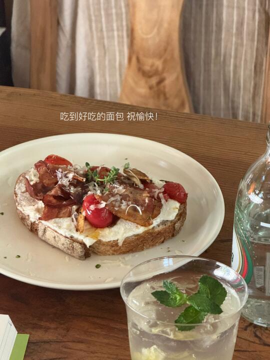 骑行去熟悉的咖啡馆,吃面包喝饮品