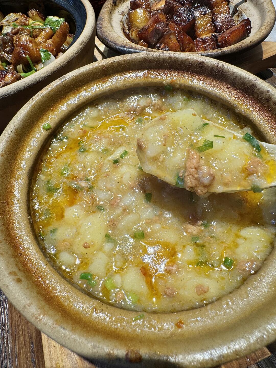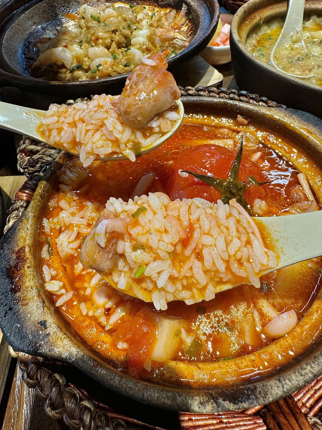 就在凤起路新开的!!吃了好几次的砂锅菜!!!好便宜好好吃,每道菜都好下饭!! 红烧肉!烂肉土豆泥!广式生啫鸡煲!川味毛血旺!蒜蓉粉丝!都好好吃!!!红烧肉真汁水多而且油脂不会很腻,咸咸甜甜的很吼吃~ 番茄牛腩砂锅的番茄很吸汤,软软的贼下饭!!!