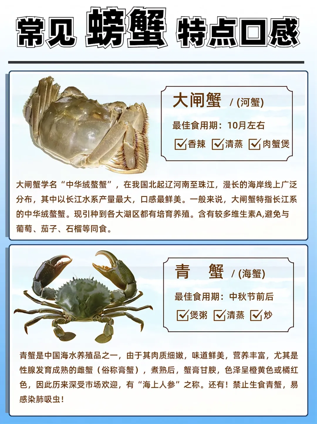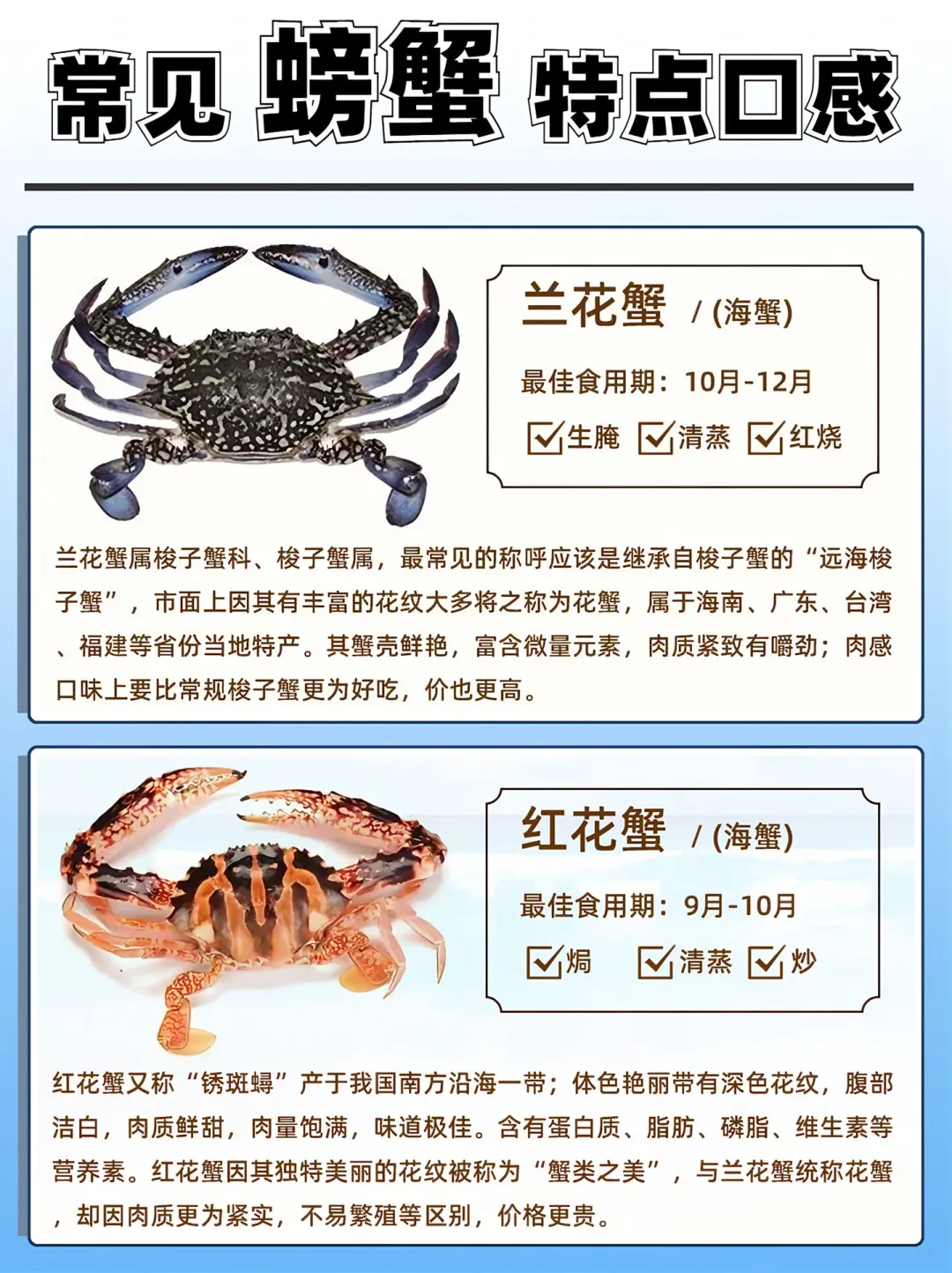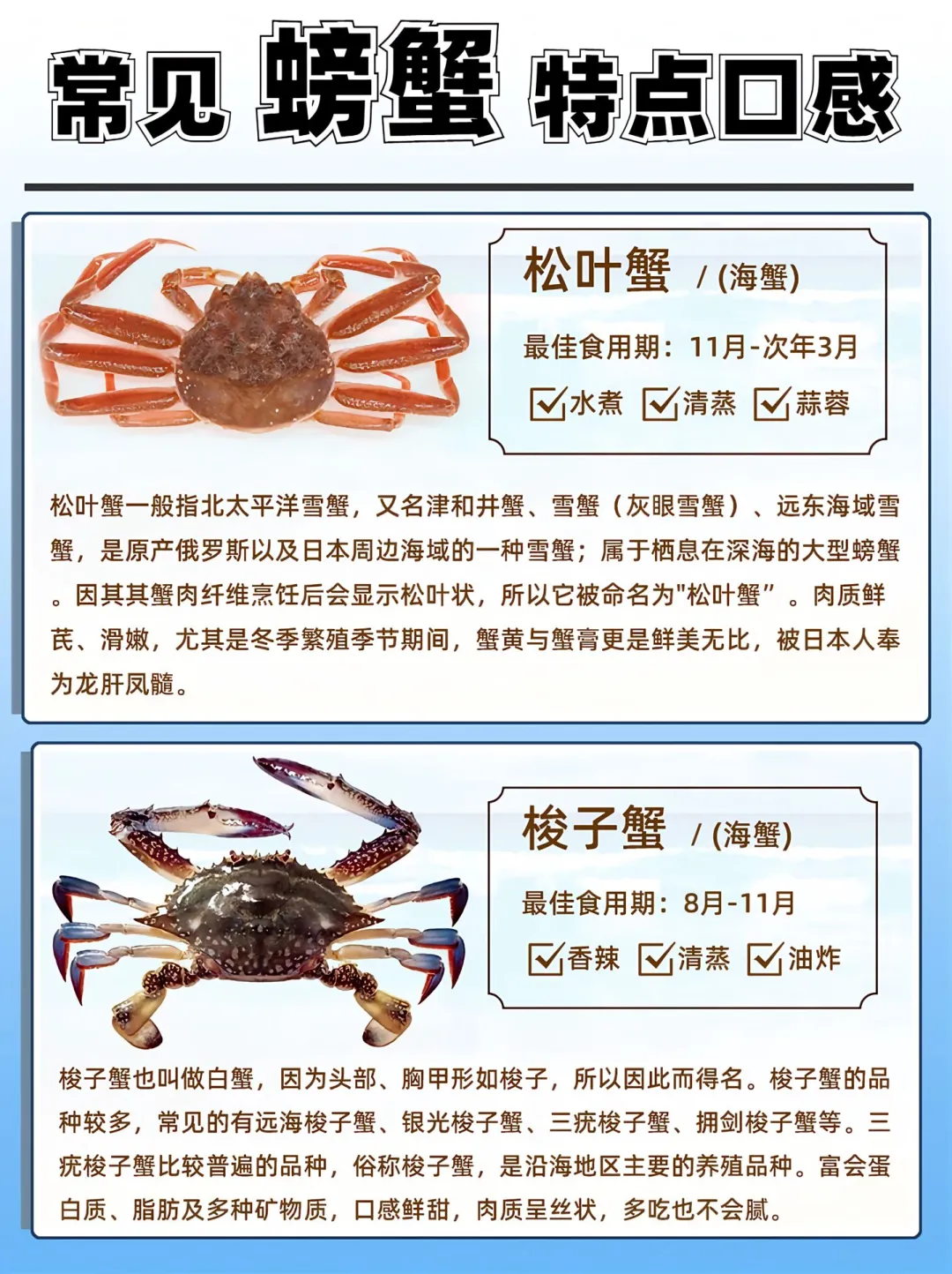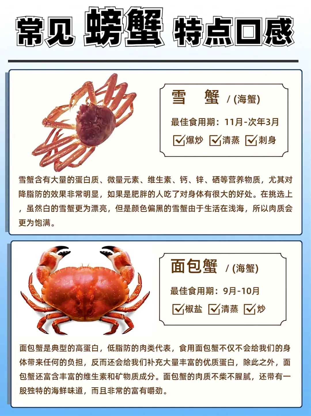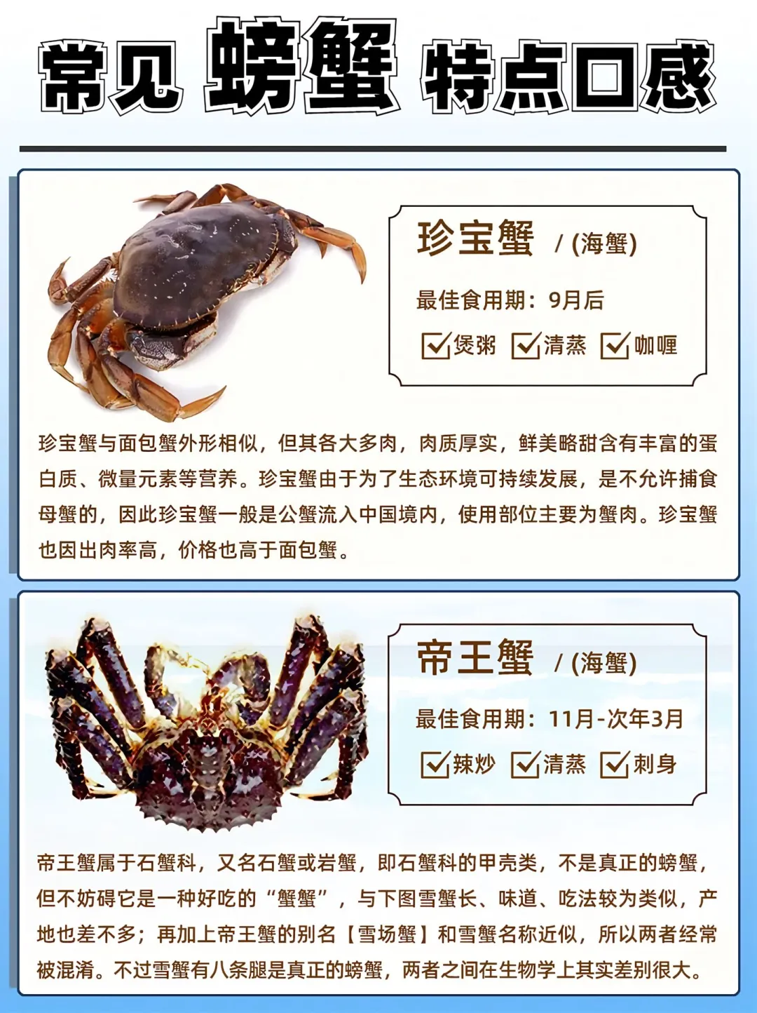 宝子们🥰,螃蟹鲜美又营养,可不同种类各有千秋!快来看看这份超全的螃蟹指南👇