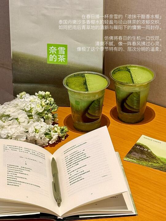 泰国丹嫩沙多香椰水的轻盈与径山抹茶的浓郁交织,如同把雨后青草地的清新与暖阳下的慵懒一同封存。仿佛将春日的生机一口饮尽。清爽不腻,像一阵春风拂过心灵。