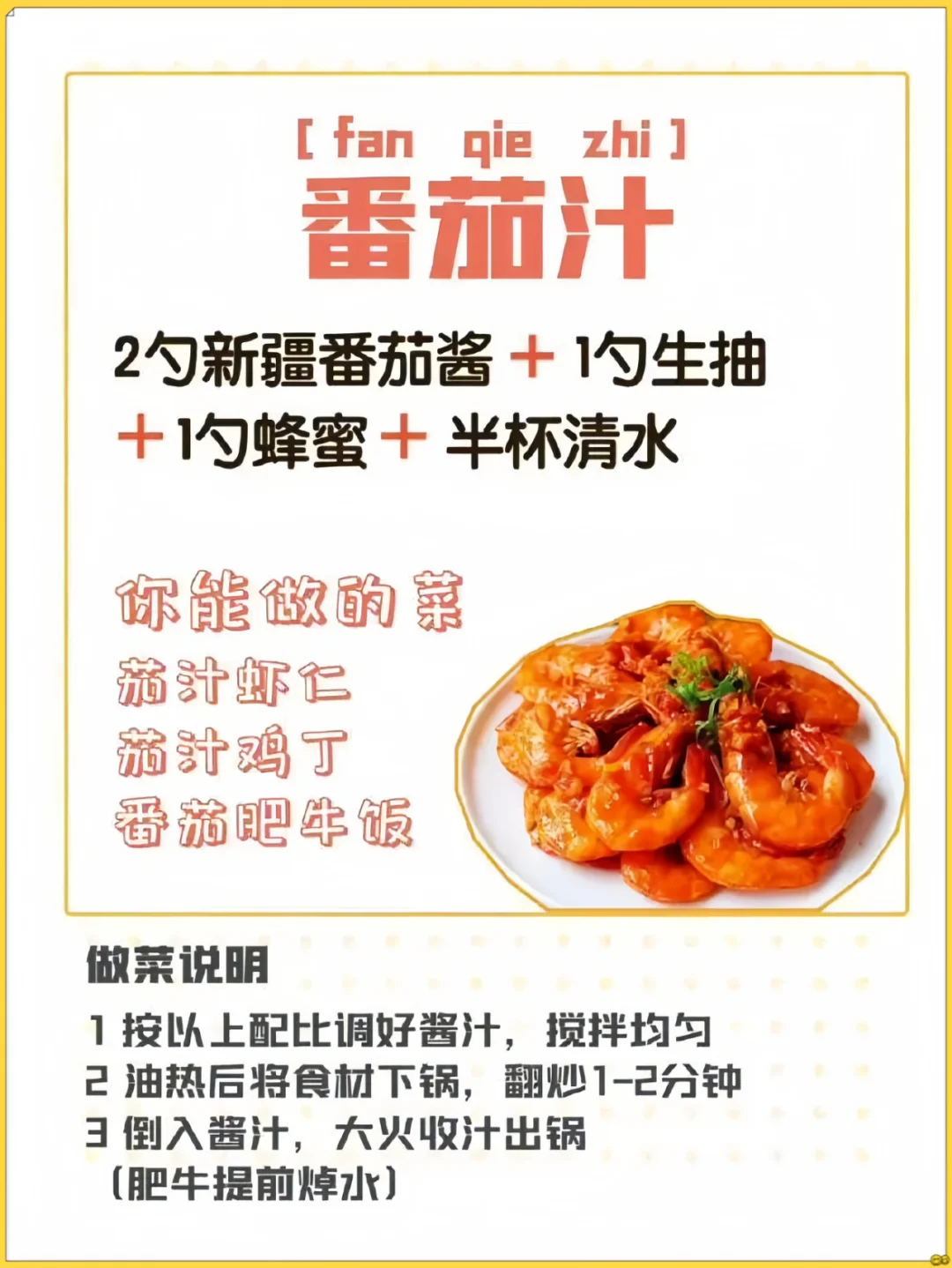2勺新疆番茄酱+1勺生抽+1蜂蜜+ 半杯清水