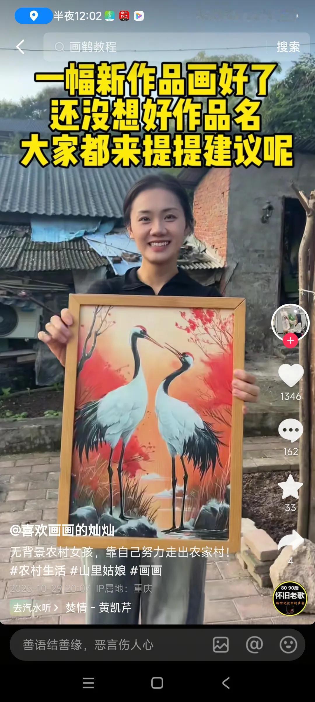 关注这个女画家好久了,听说是98年的,很年轻,在乡村生活,房子有些旧,每天高高兴