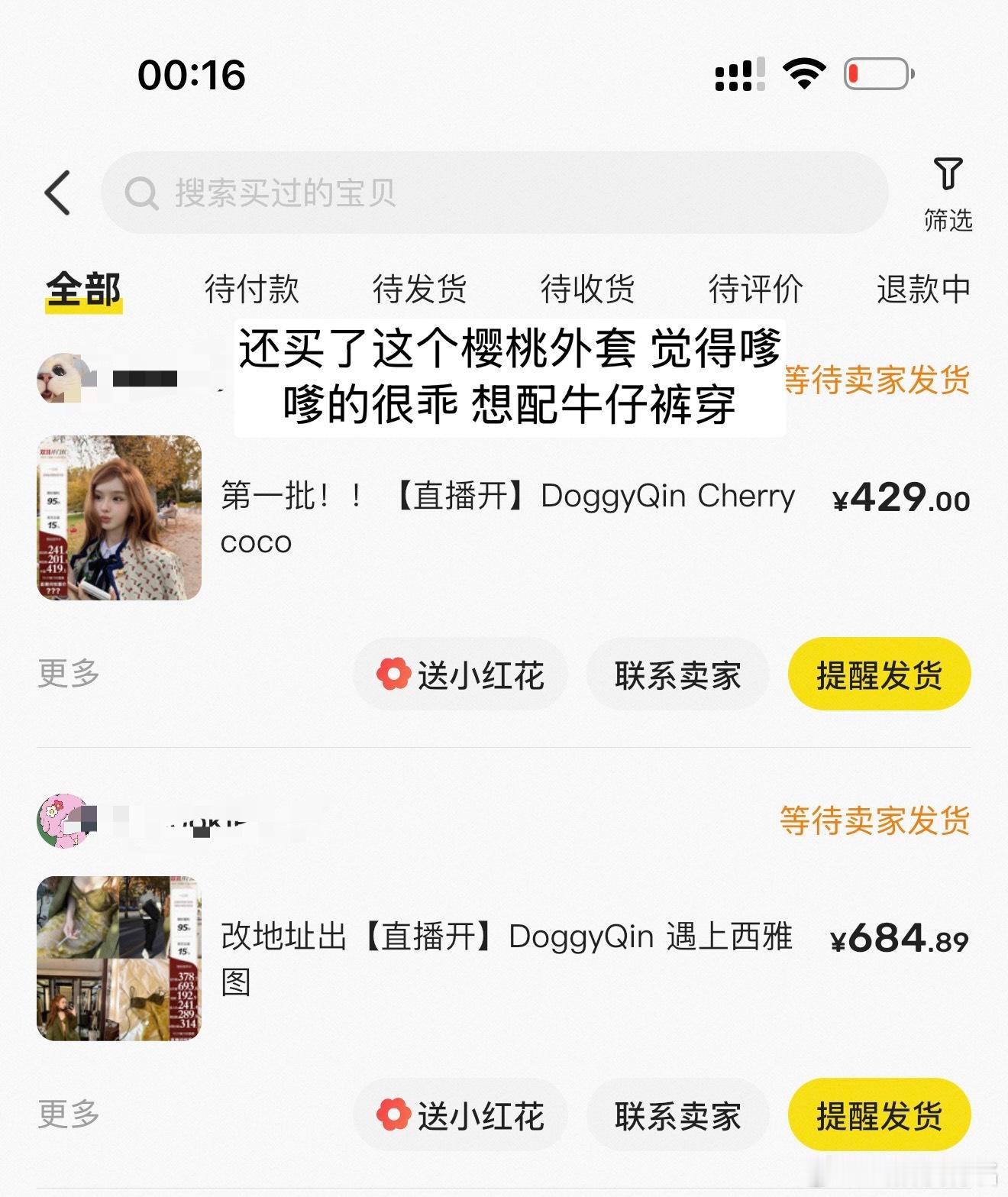 好了我来了[你好] 就是看了一晚上doggyqin直播一件衣服也没抢到 我这个手