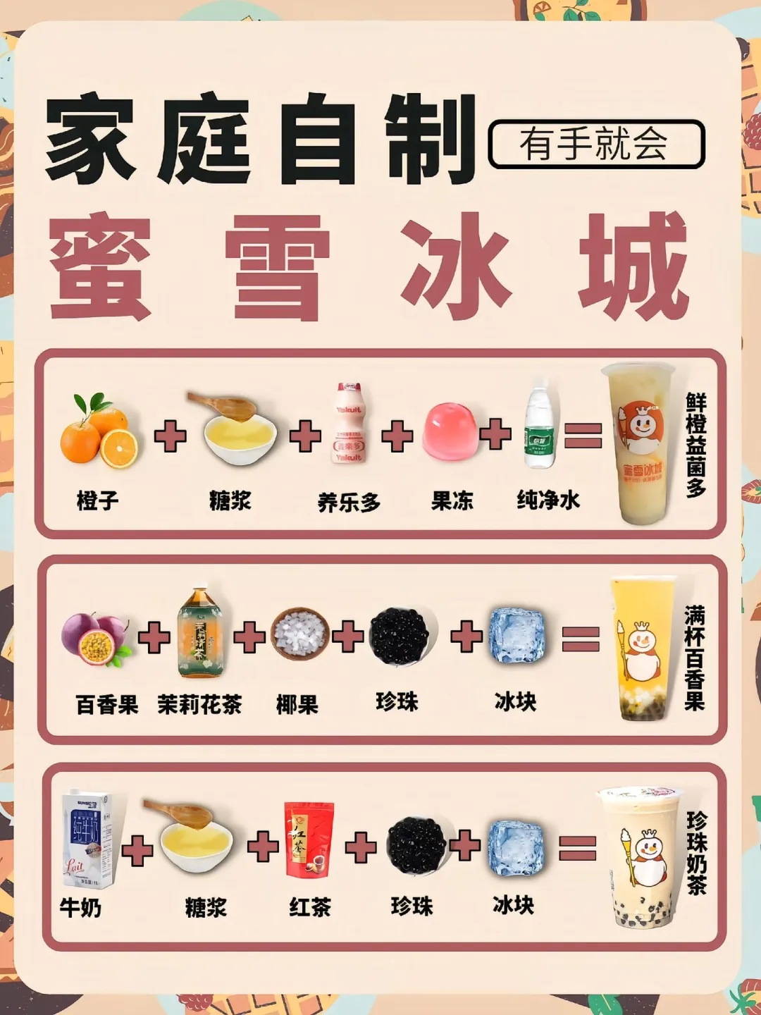 🔸 珍珠奶茶🧋:牛奶+红茶+糖浆+珍珠+冰块!丝滑不腻,成本不到5块钱!