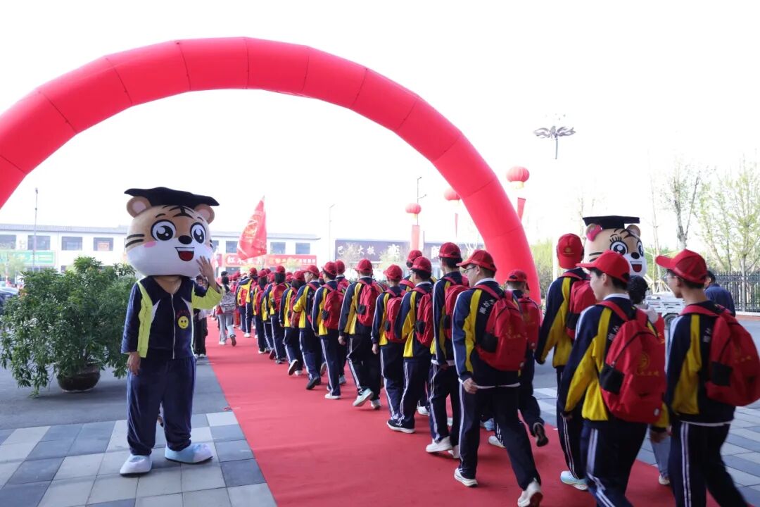 校门口战鼓擂动,鼓声震天,激荡起少年心中万丈豪情;条幅方队昂首挺立,标语醒目,为远行之路注入满满力量。同学们挥舞旗帜,意气风发、热忱满腔,身着整齐校服,迎着和煦春风,迈着铿锵步伐有序出发。青春身影与春日暖阳交相辉映,成为校园外最亮眼的风景。