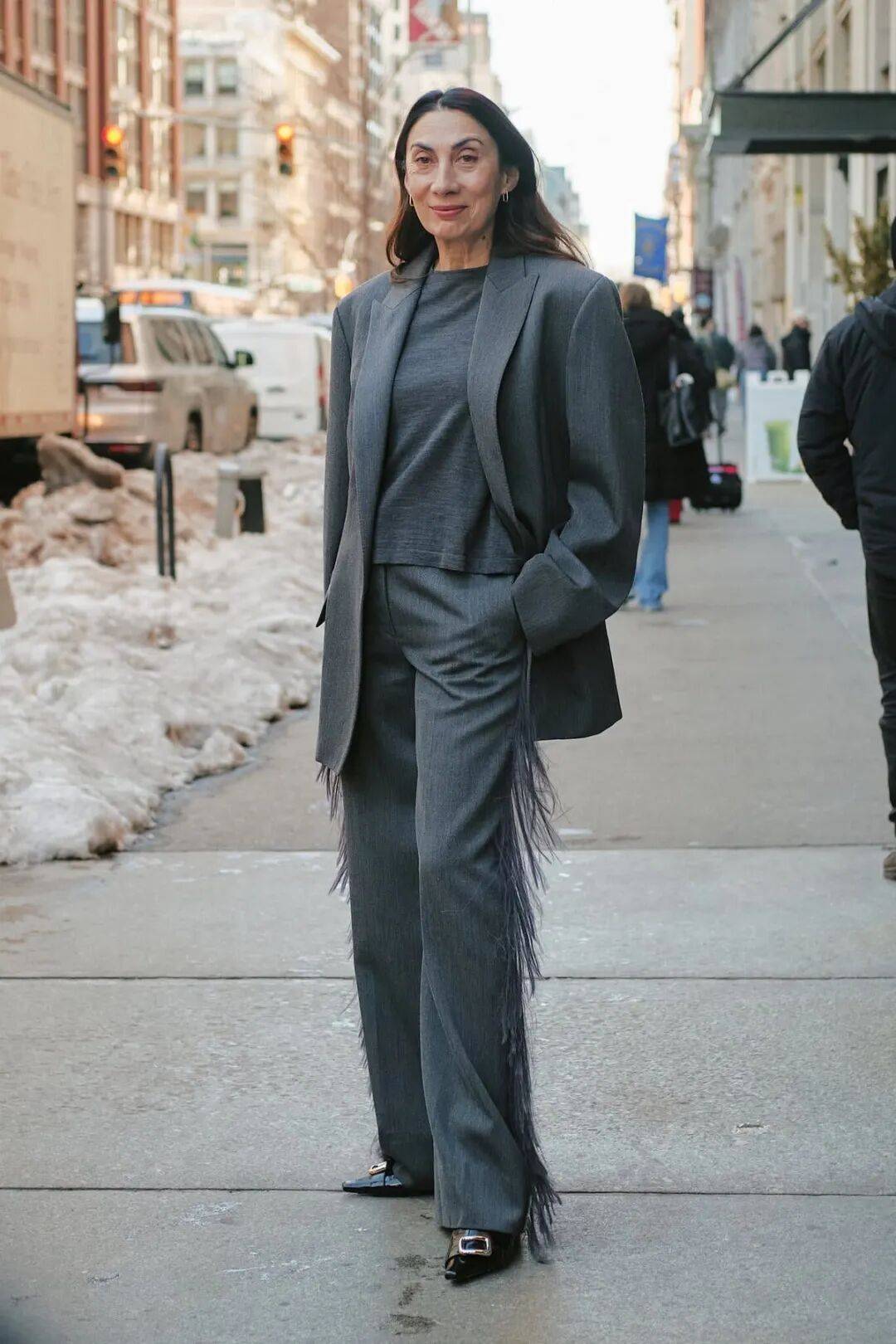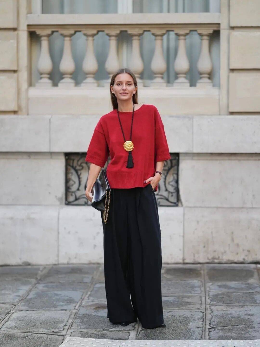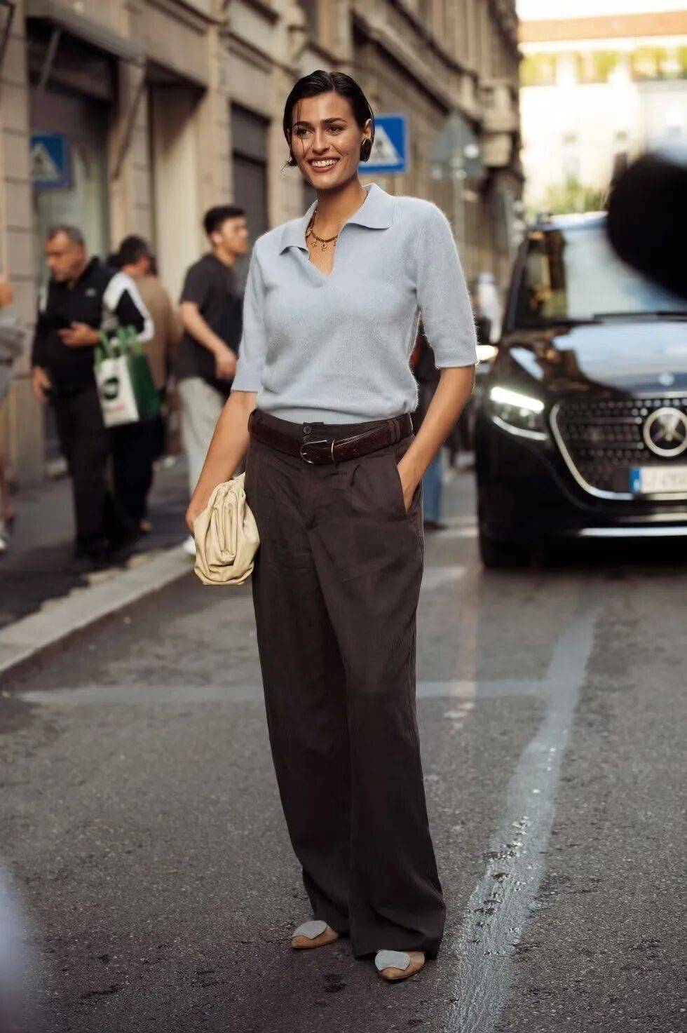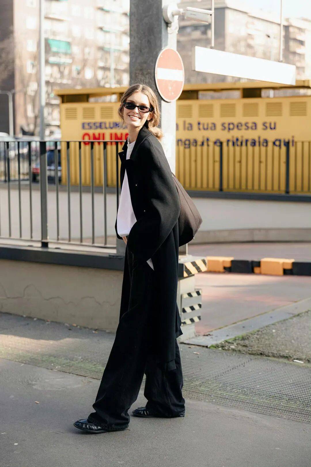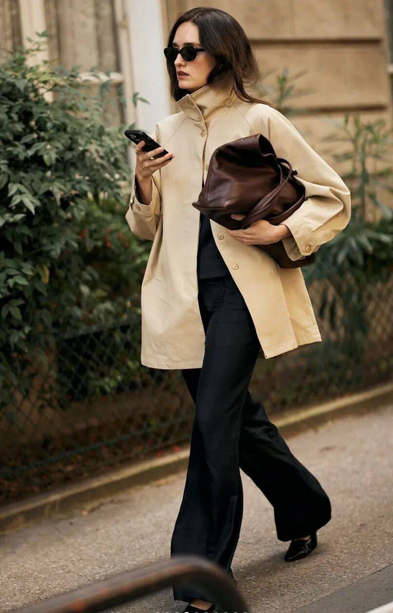 这种进退得宜的分寸感,让小黑鞋成了衣橱里最忙碌的那双平底鞋,几乎每一套长裤造型,都能被与它相得益彰。