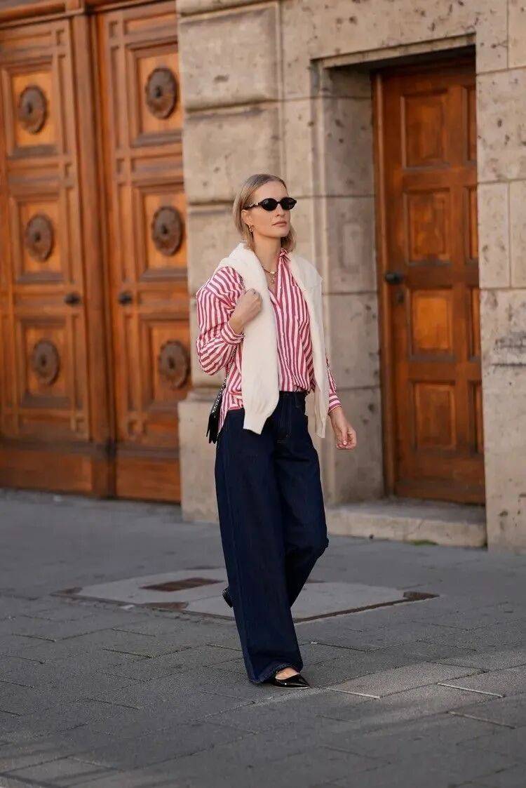 身心轻盈,却也还不敢彻底卸下长袖长衫。阳光薄薄地洒在肩头,风里还夹着些许凉意,好比今天要分享的长裤配平底鞋: