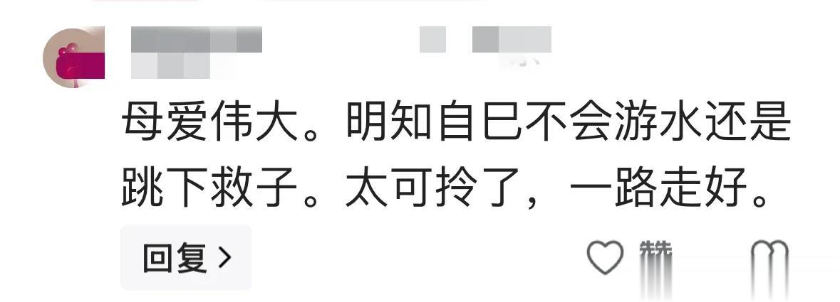 看见儿子在水中挣扎,妈妈便毫不犹豫地跳了下去,