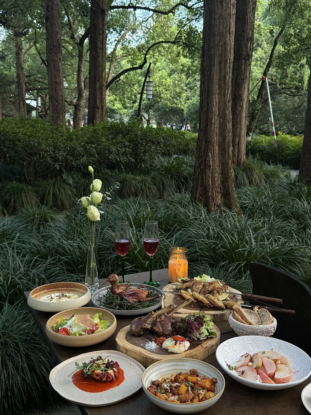 杭州漂亮餐厅+1+1~藏在市区里的森林餐厅!!满眼绿意环绕,好chill ~每个角落都很好拍,菜品也吼吼吃!!!
