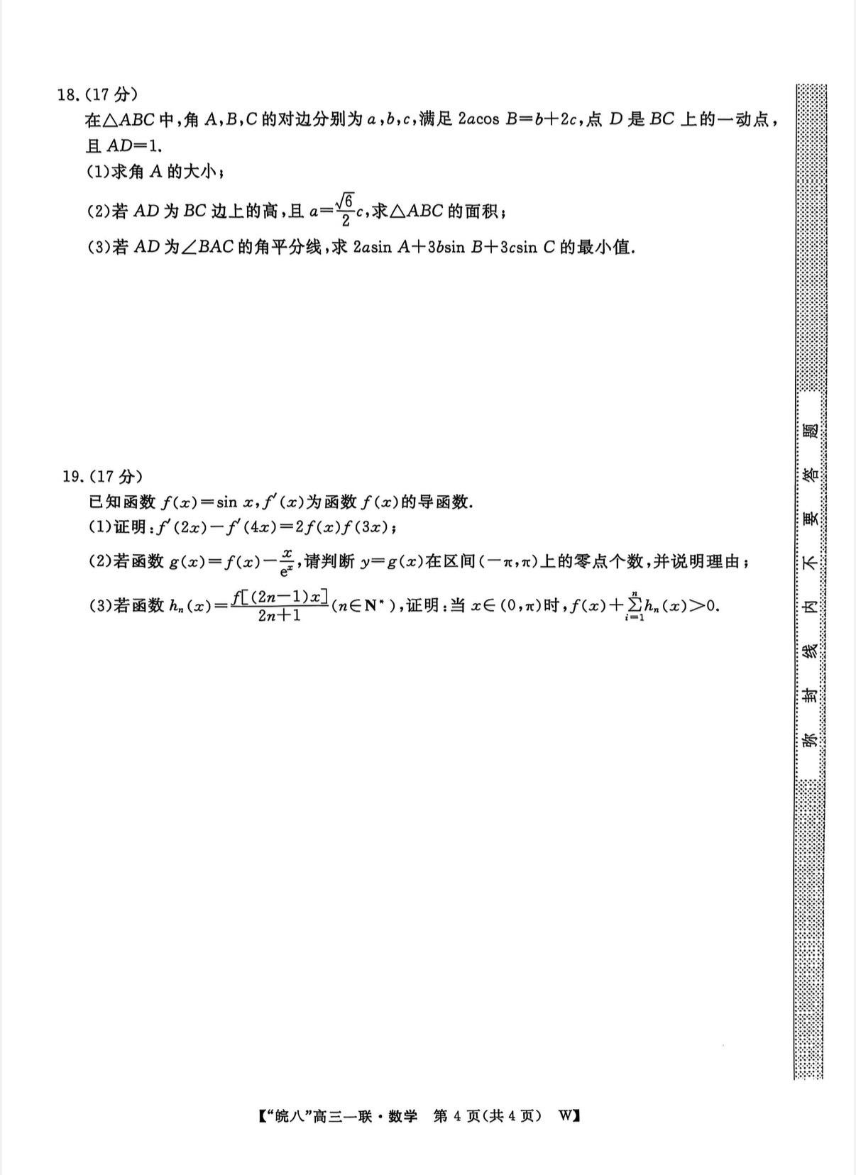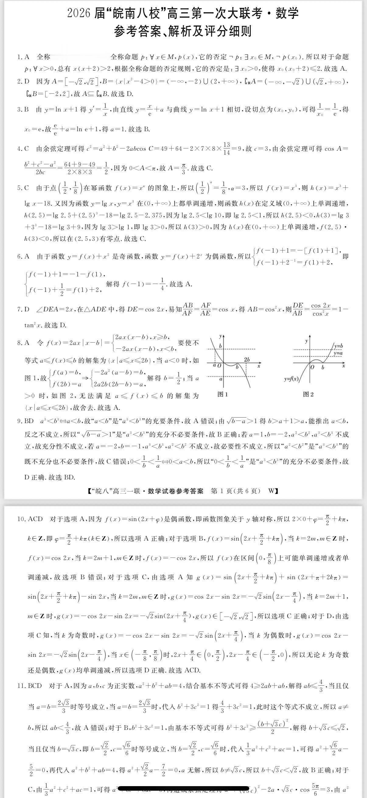 安徽省皖南八校2026届高三第一次联考数学试卷及答案,因为一轮复习没结束,只考到解三角形!自从全国卷新定义昙花一现后,现在的模拟题又回到导数圆锥压轴的传统模式
