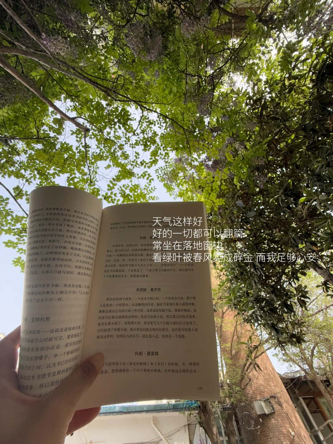 看绿叶被春风晃成碎金,而我足够心安。