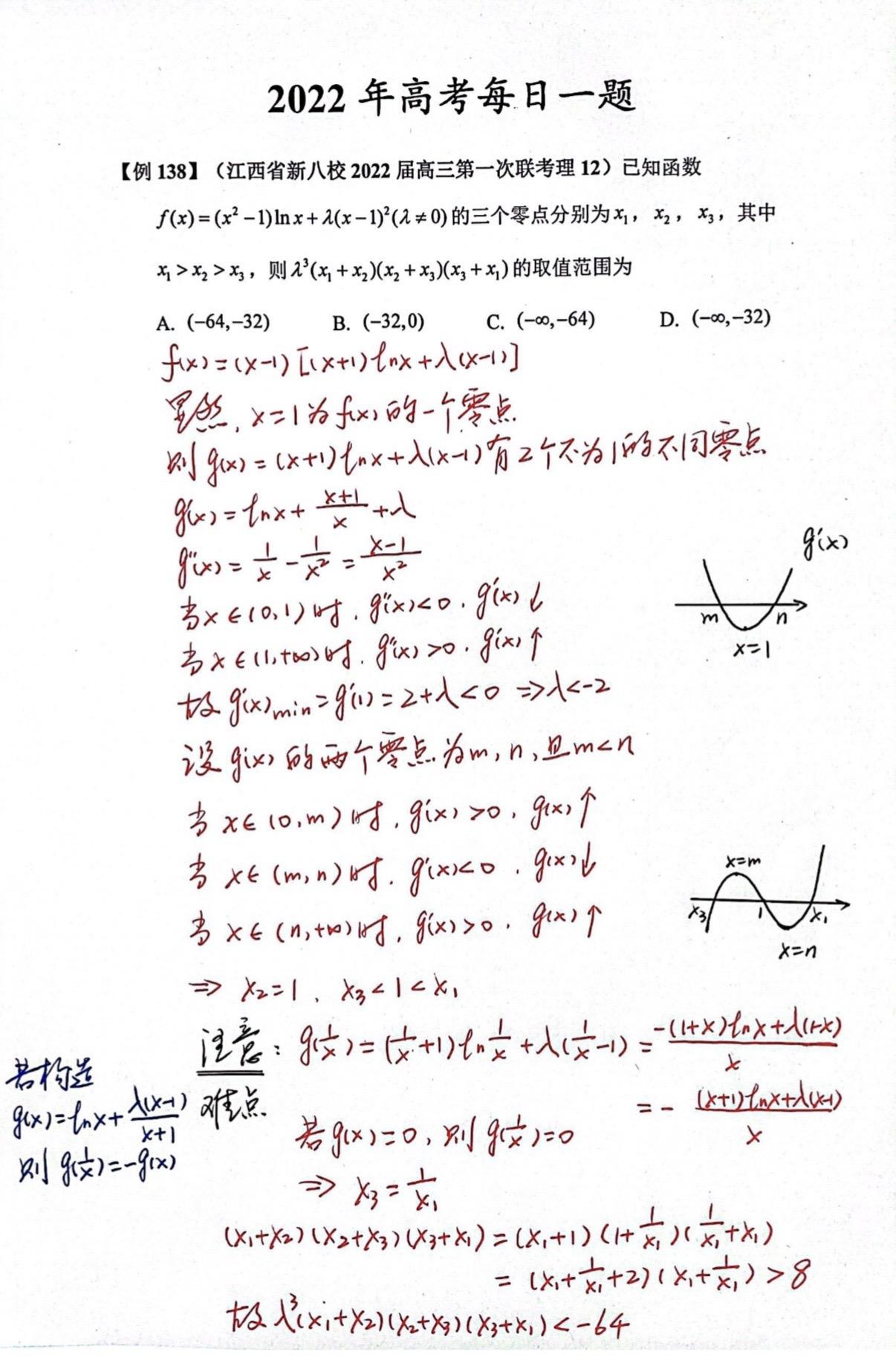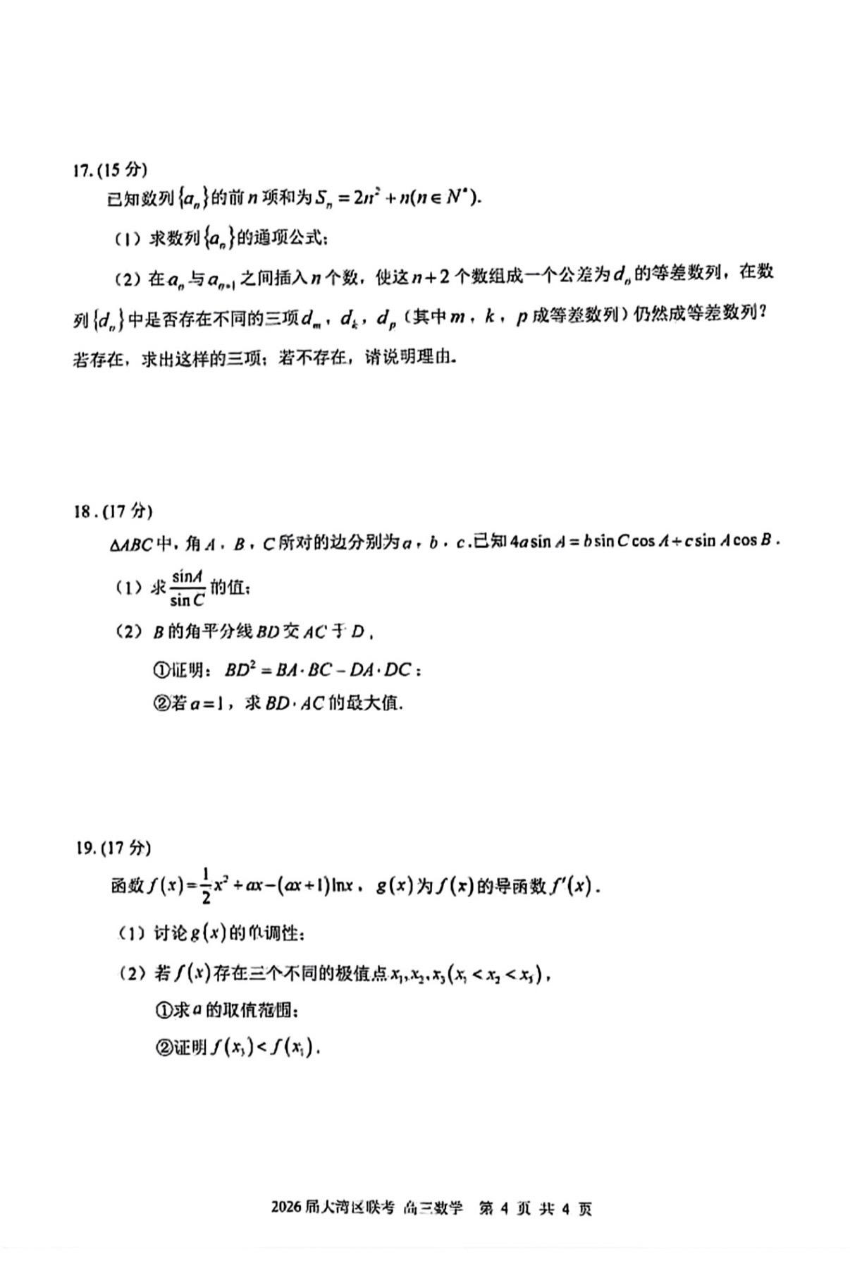 广东大湾区2026届高三第一次联考数学试题,质量不错,难度与真题接近!导数压轴题是经典的零点互倒问题,我在22年的每日一题中讲过,这两年模拟题我也见过不少!