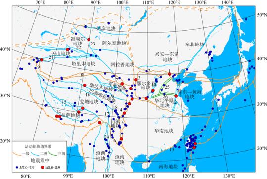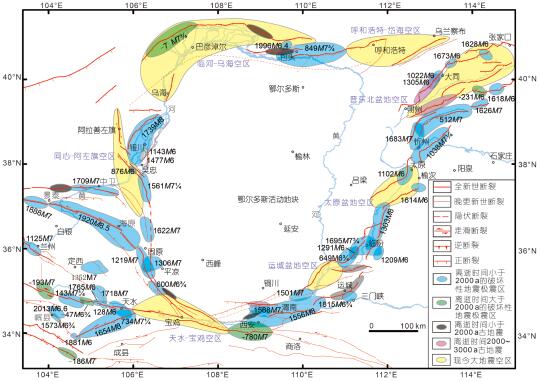 基于地块周边强震活动、迁移和复发规律, 构建了鄂尔多斯活动地块最新强震破裂图像, 识别出鄂尔多斯活动地块周缘边界带内存在7个明显的大地震空区、空段, 也就是未来强震发生的主要位置,:分别为