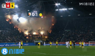 第46分钟,远征的多特球迷在看台燃放烟花,场内一度狼烟四起!场面壮观↓