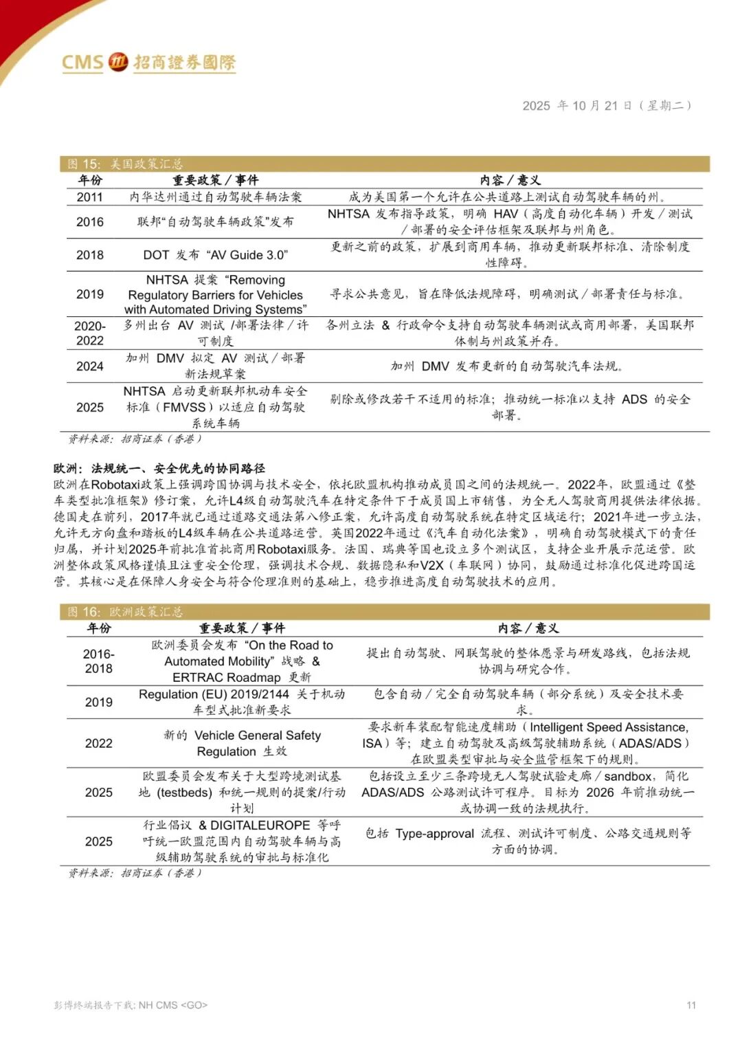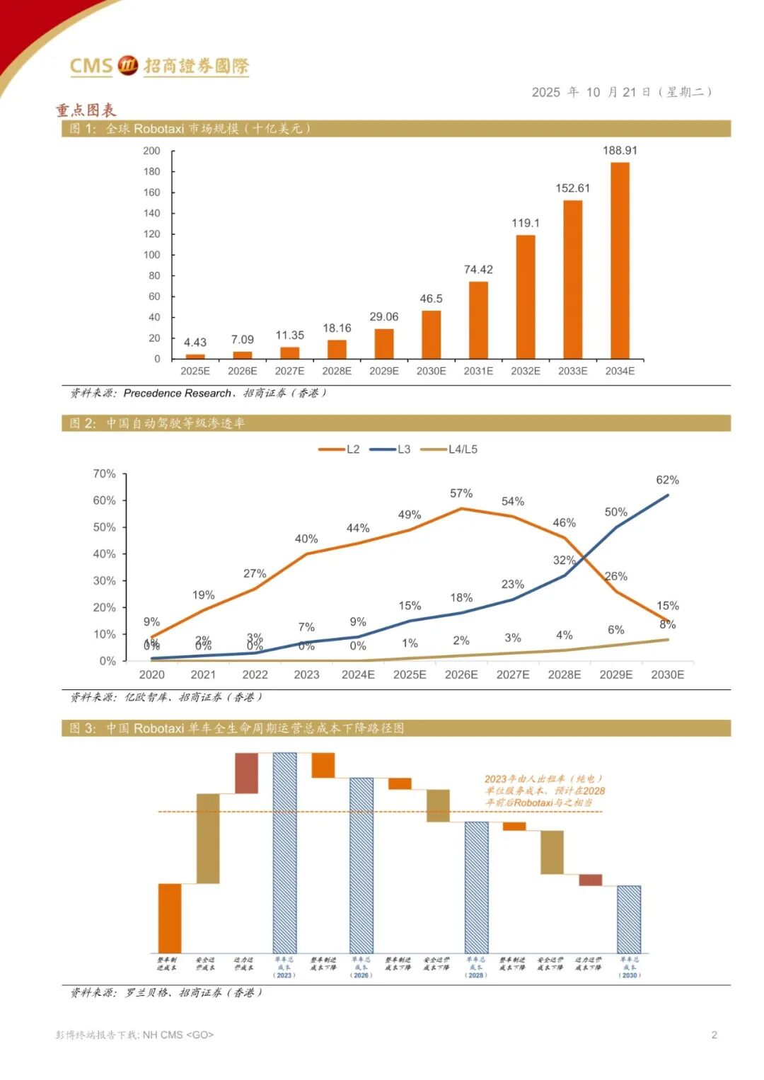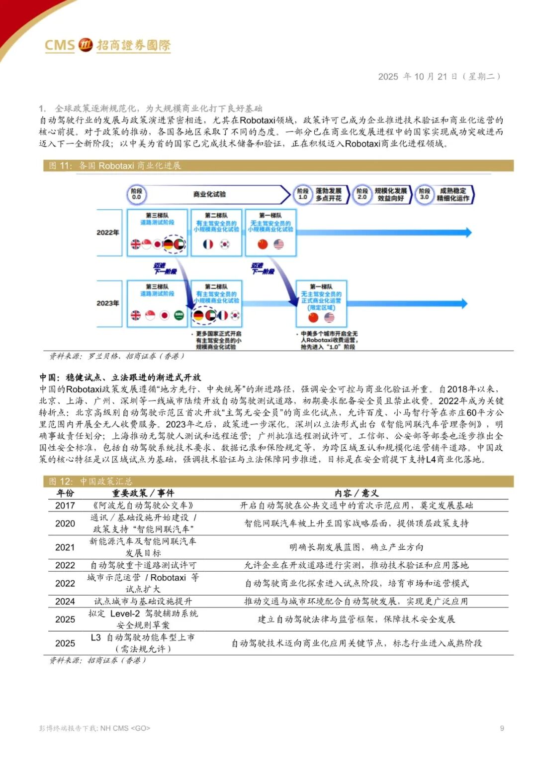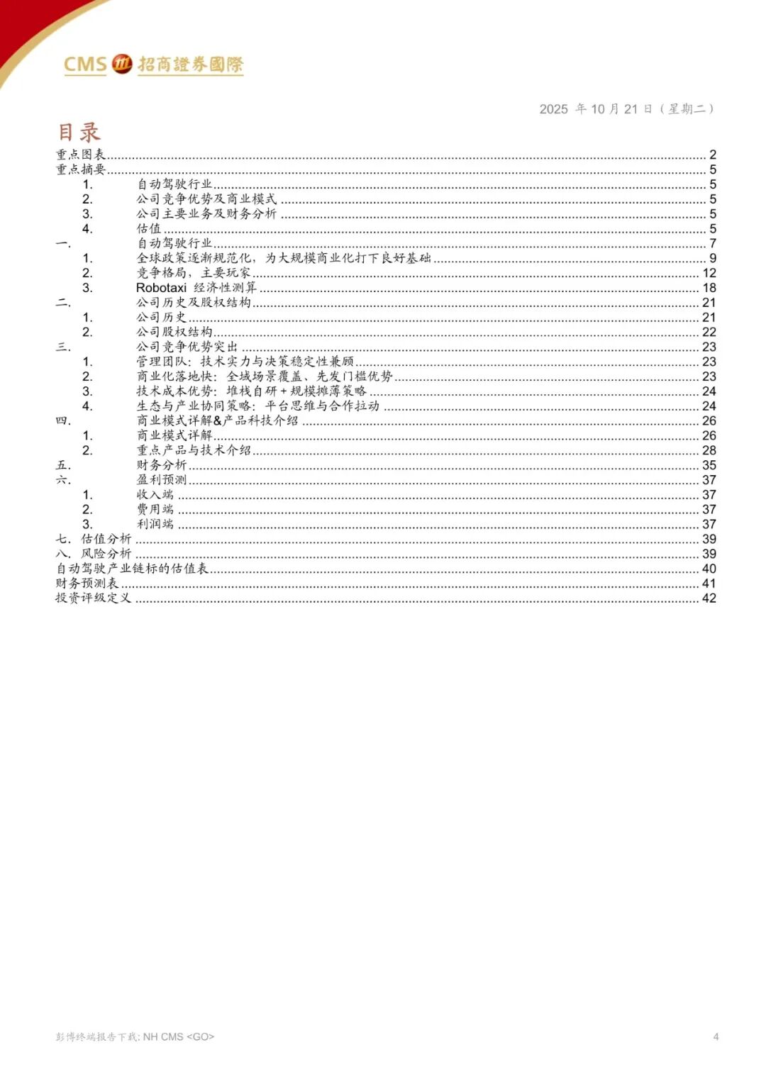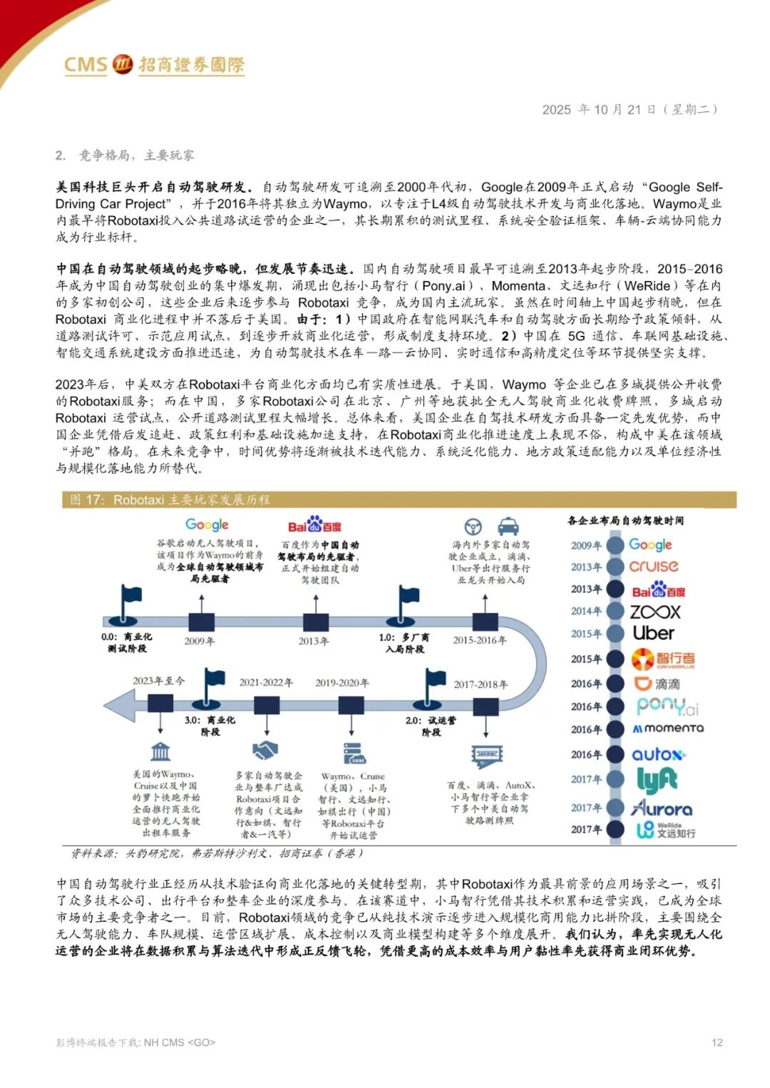 小马智行成立于2016年,由彭军与楼天城联合创立,是中国最早实现全无人驾驶收费运营的自动驾驶公司。公司以自研PonyWorld仿真系统+端到端AI框架为核心,形成闭环训练体系。虚拟司机平台实现算法、域控制器、仿真系统全栈打通,平衡安全性与成本。AI模型快速迭代推动感知、预测、规划性能持续优化,构筑深厚护城河。在Robotaxi领域,和OEM合作量产降本快,并与平台合作增强流量。公司第七代车型成本较前代下降70%,设计寿命达10年/60万公里,与丰田、广汽等合作加速量产。且目前已在北上广深四城获得Robotaxi商业化许可,覆盖城市仅次于萝卜快跑。2025年上半年公司Robotaxi乘客收入同比增长300%,注册用户数增长136%,车队规模突破500台,预计年底达1,000台,率先迈入Robotaxi规模化盈利前夜。Robotruck领域,虽短期收入将保持稳定,但未来Robotaxi技术成熟后可以低成本迅速地复制到Robotruck业务,开启第二成长曲线。